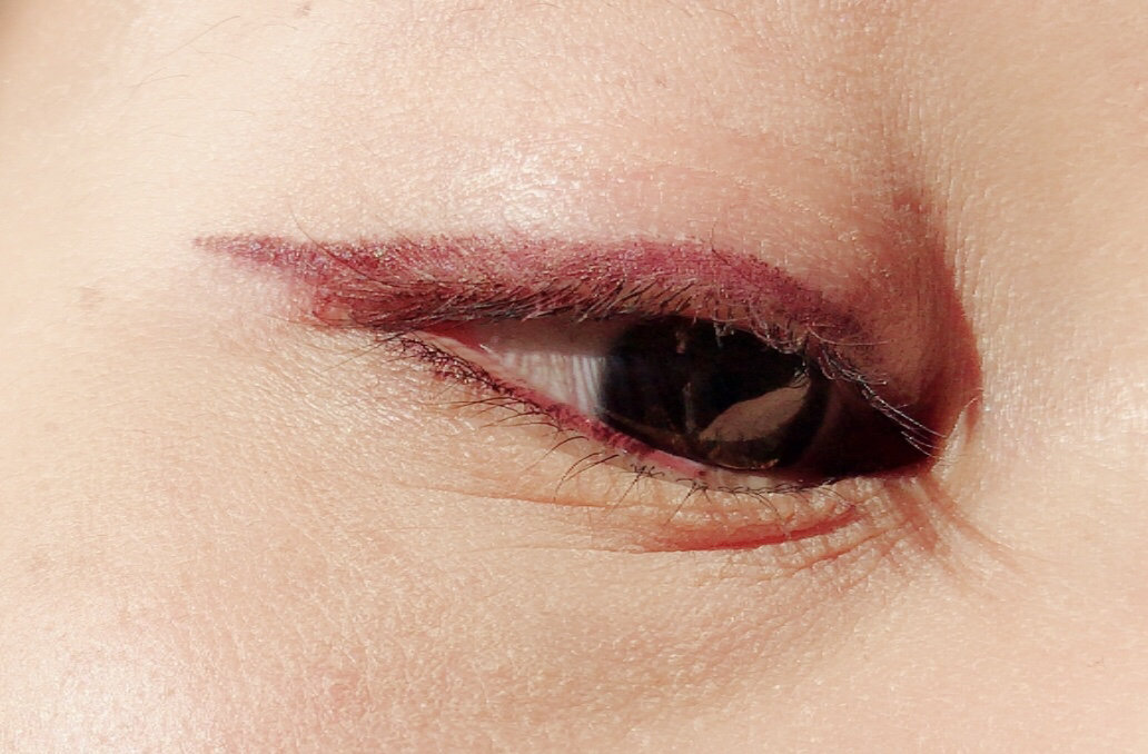 さらに、目尻の二重が出現する部分からラインを太くすると、