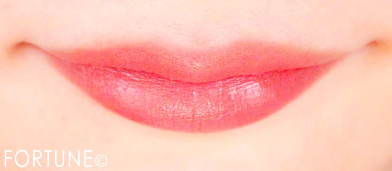 赤みの強いオレンジで、夏らしいポップな印象と女性らしさを兼ね備えているカラー!子供っぽい印象になりにくいのがポイントです。グロスを重ねてツヤ感を出しても、夏らしくて◎でした。