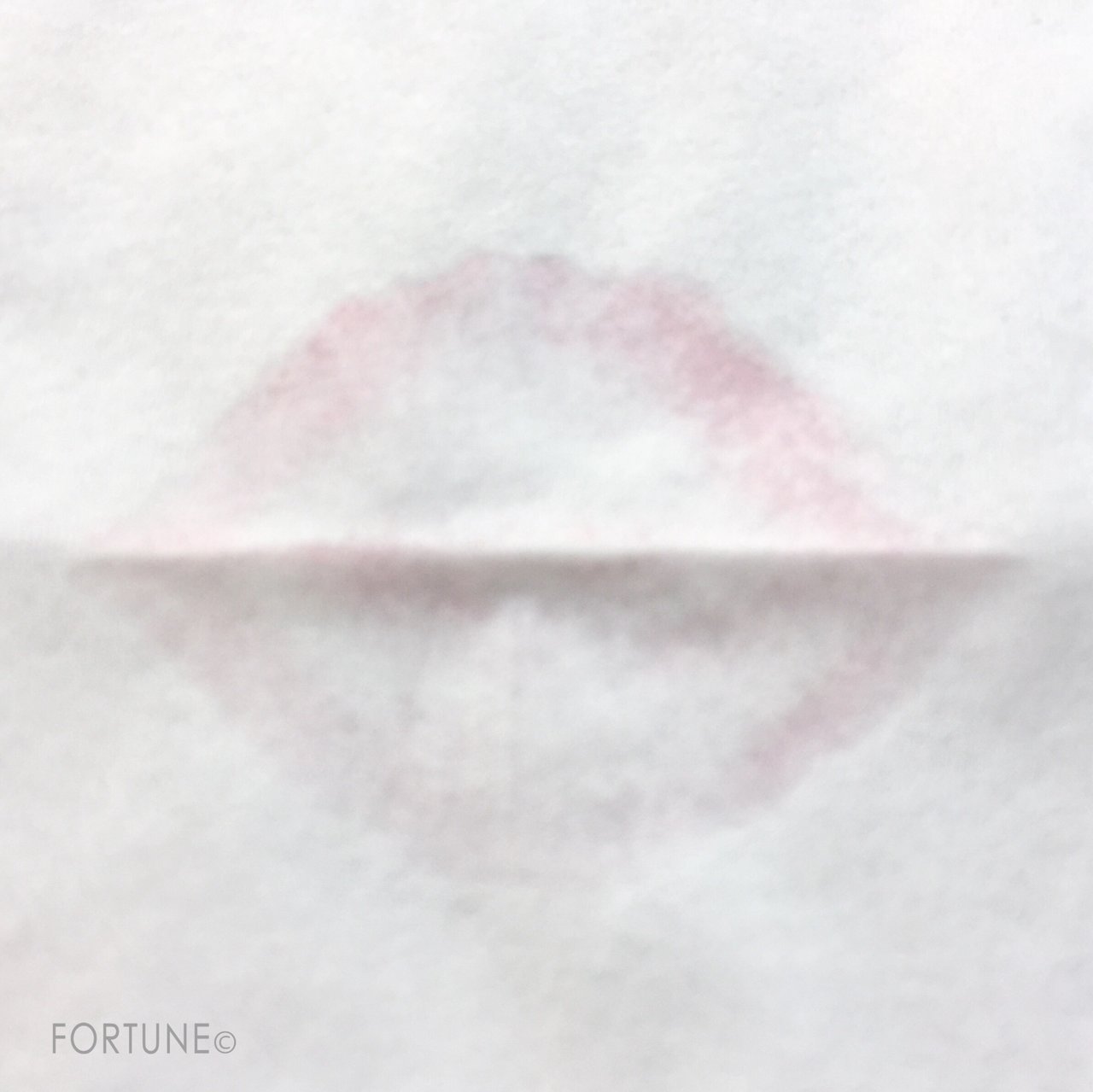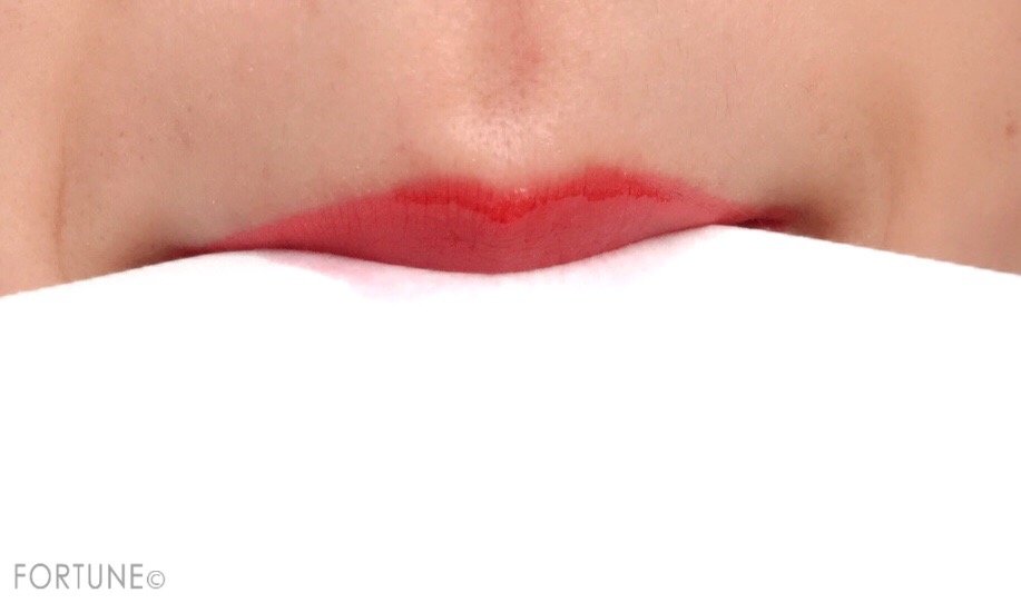 ⑵リップカラーを少しティッシュオフし、トップコートを適量、唇に塗布してください。