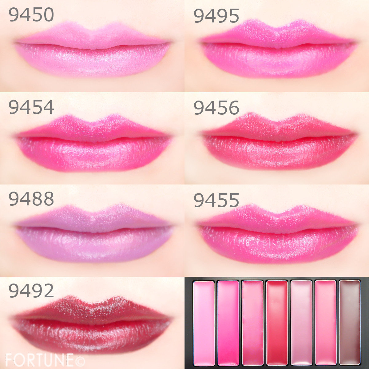 ブライトカラーの9450、青みピンクの9495、バービーピンクの9454、ビビッドピンクの9455は、大人かわいいピンクリップに仕上げてくれます。