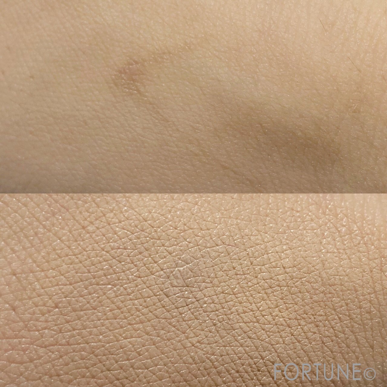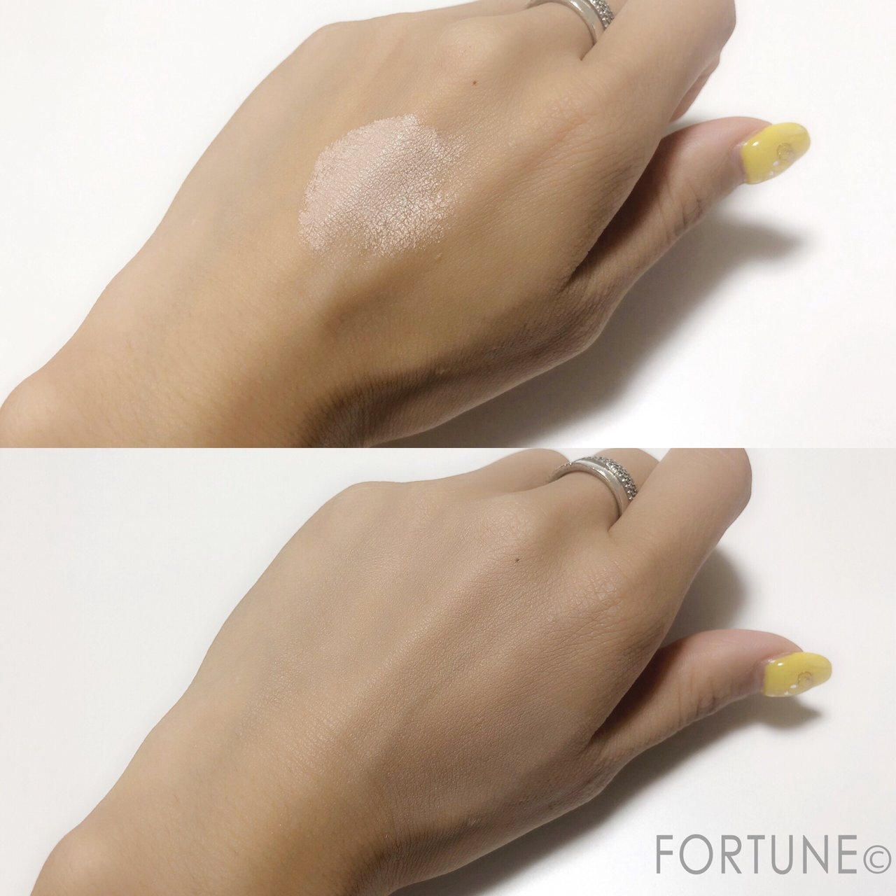 写真上は手に出来てしまった傷跡で、その上からさっと一回ファンデーションを塗ったものが下の写真。