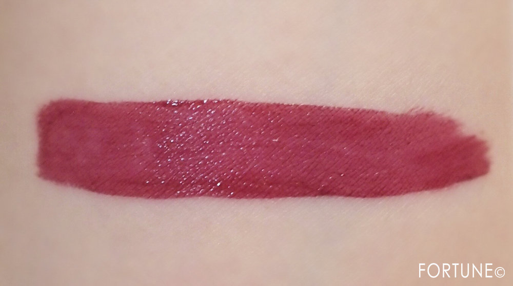 肌にのせると、プラムがかった深みのある、くすみ系レッドに発色。