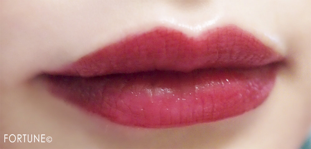 174メランコリアを実際に唇にのせると、ドラマティックな赤リップに!