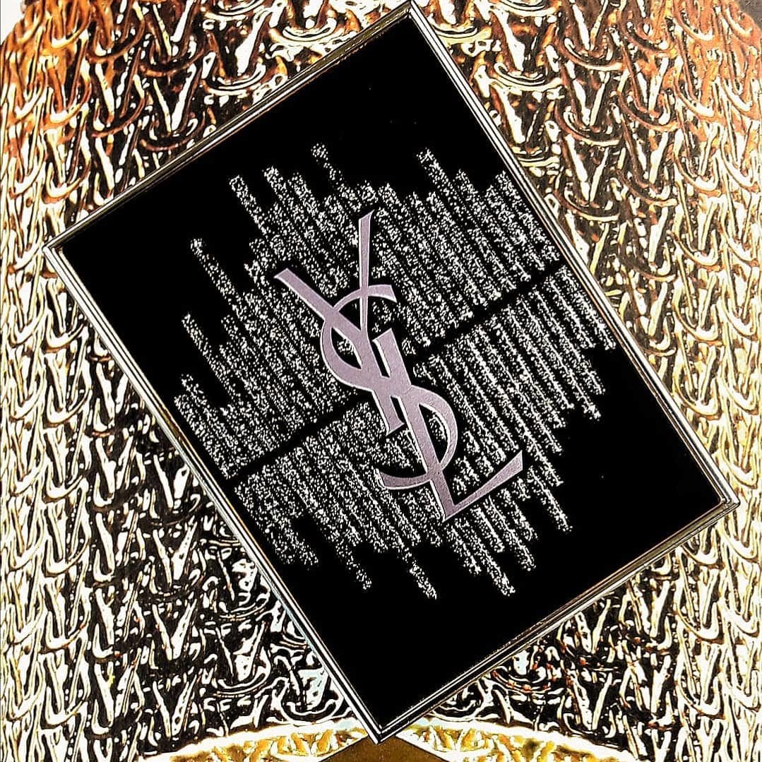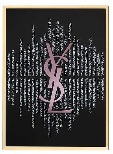 ブラックのグリッターがキラめくイコライザーのデザインと、プラム色のYSLロゴが飾られています。