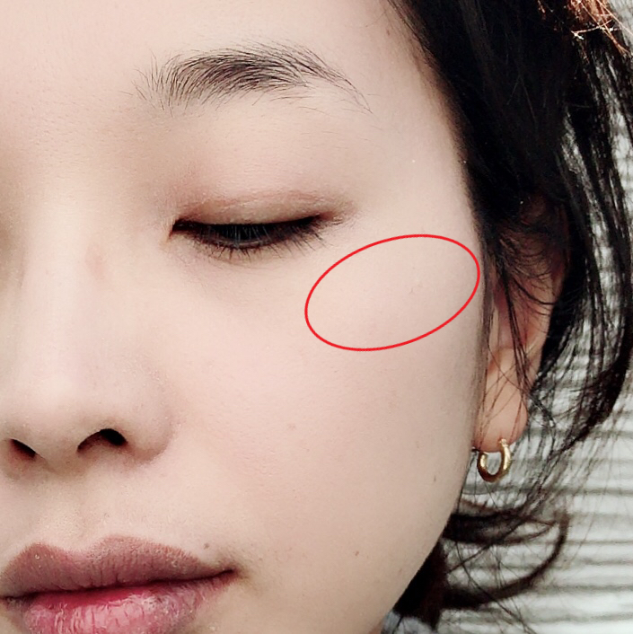 ただし、大きくいれすぎないようにチークの上部にIN。