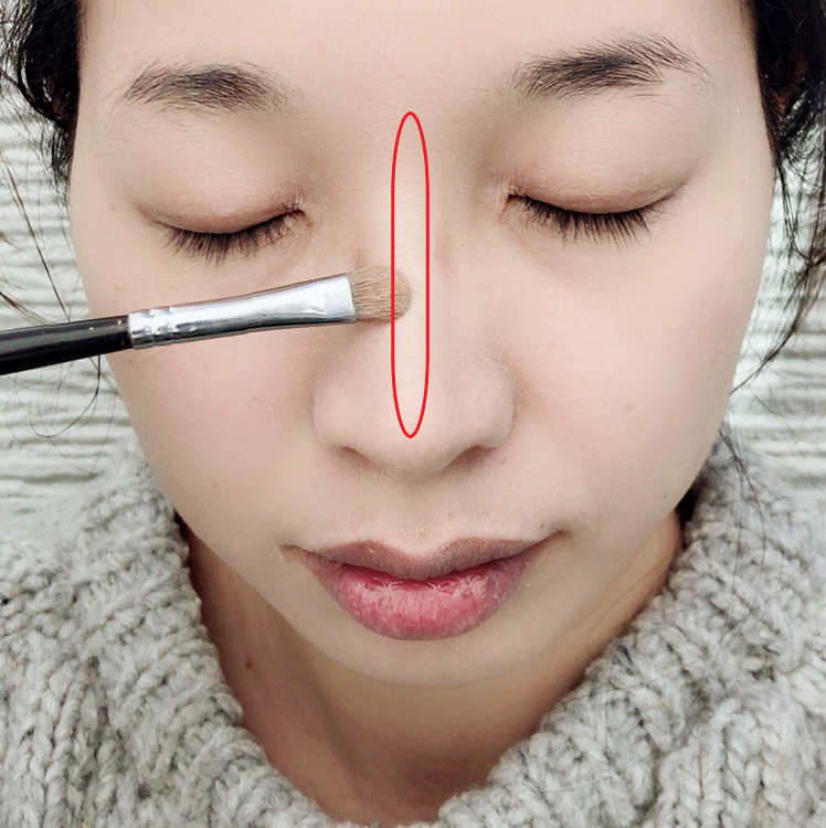 そこで、鼻筋だけアイシャドウブラシなどのブラシを活用してスッと置くようにのせます。