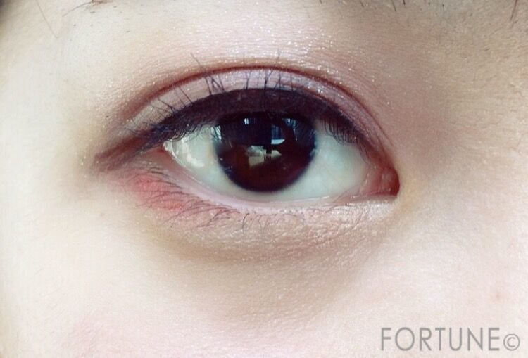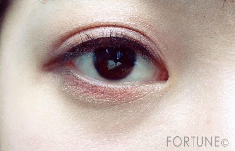基本メイクの下まぶた全体に乗せているカラーに、薄いピンクを混ぜる方法です。