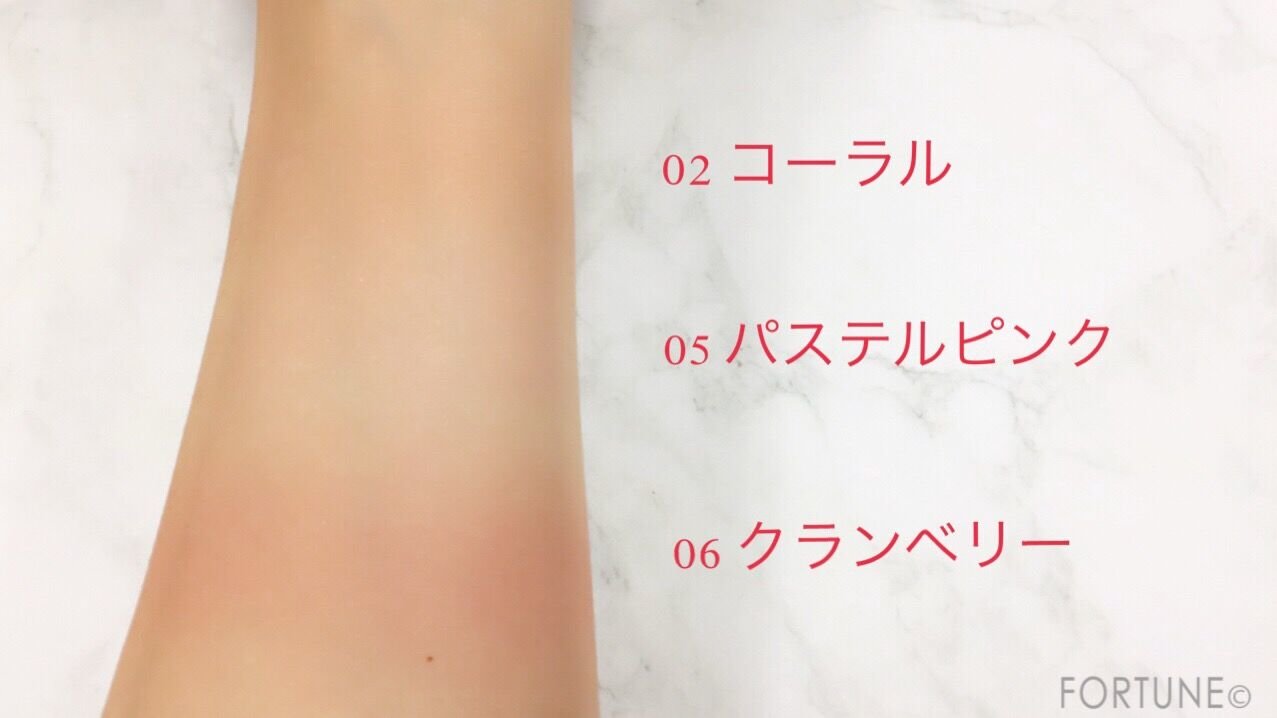 今回は「02 コーラル」「05 パステルピンク」「06 クランベリー」の3色を編集部が使ってみました♪