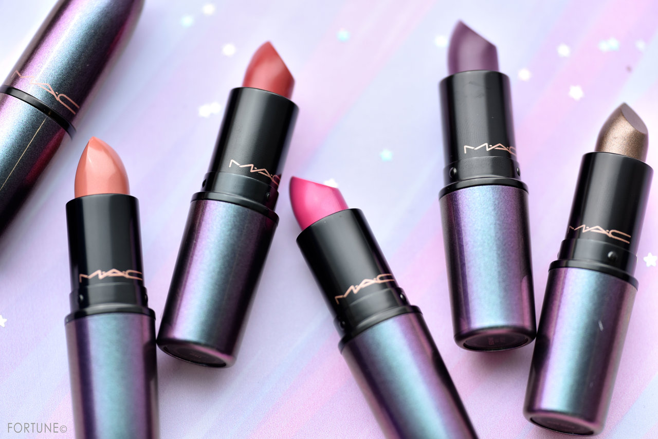 バニラ香るM•A•C(マック)のリップスティック。蒸し暑い夏の夜に輝く眩い光をイメージしている今回のシリーズは、ギラギラしないのに妖艶に玉虫色のように光によって印象が変わるリップになっています。
