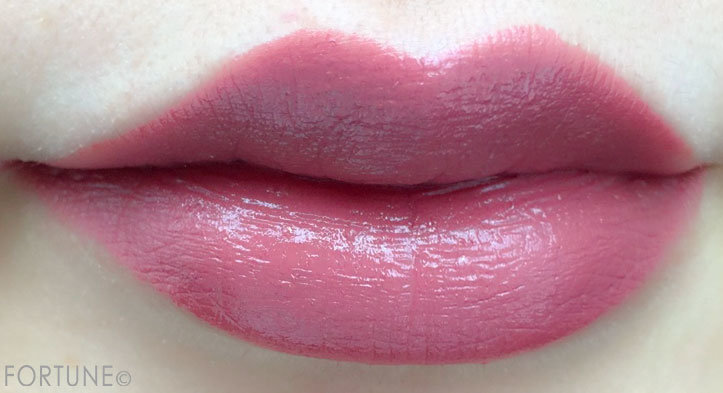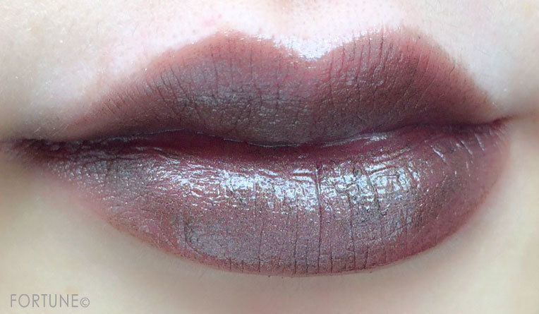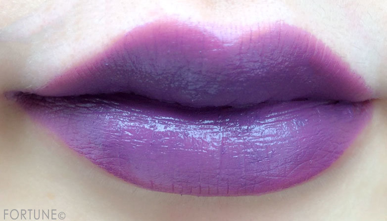 赤みのある深いバイオレットカラーなので顔映りもくすまず綺麗。このリップスティックはとてもテクスチャーが柔らかくスルスルと伸びるから塗りやすく、色がとても綺麗に馴染みますよ。