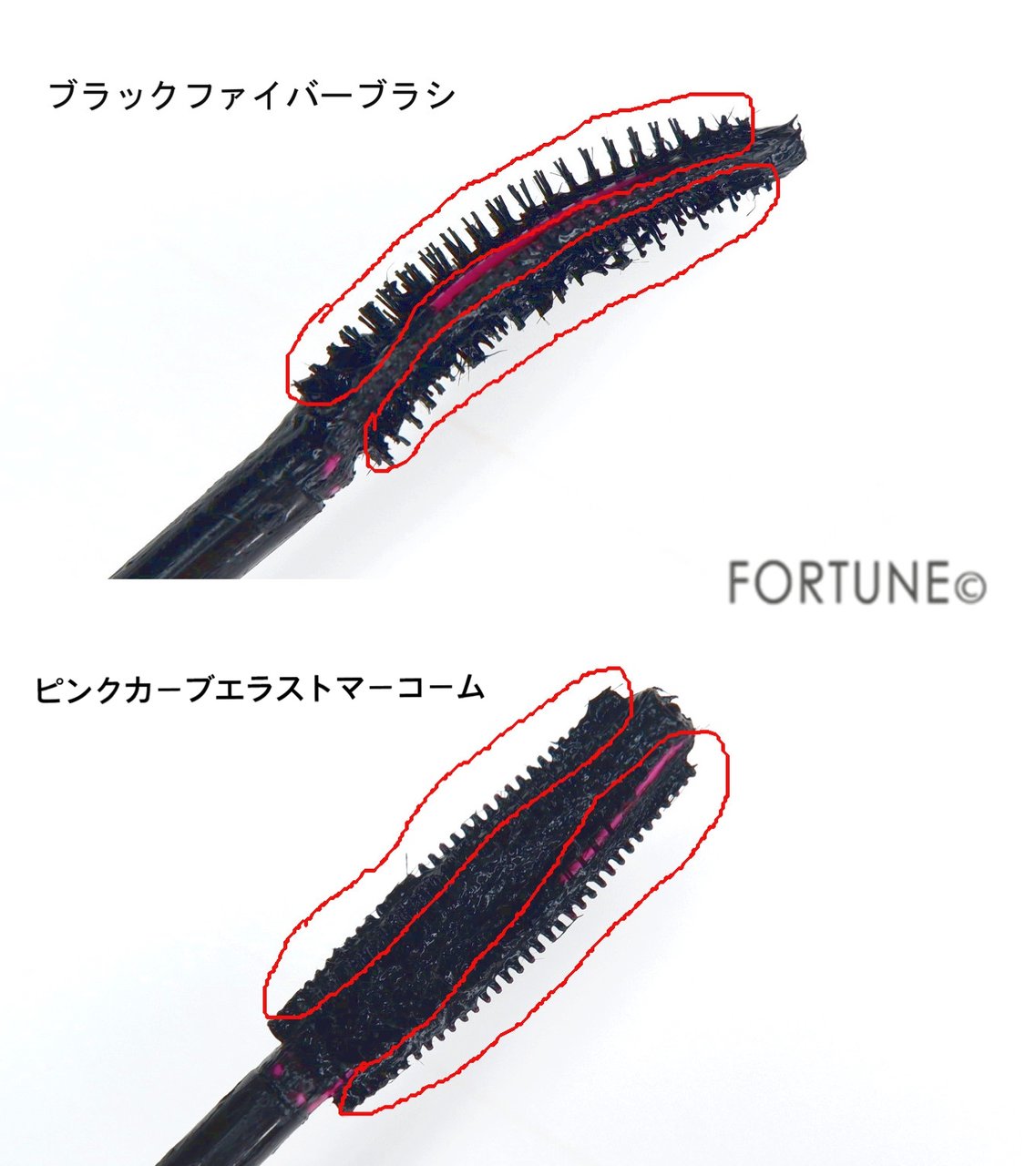 ブラックファイバーブラシだけだと少し束になっている部分があったのですが、ピンクカーブエラストマーコームを使うことで、まつ毛をセパレートしながら扇状に広げてくれました!