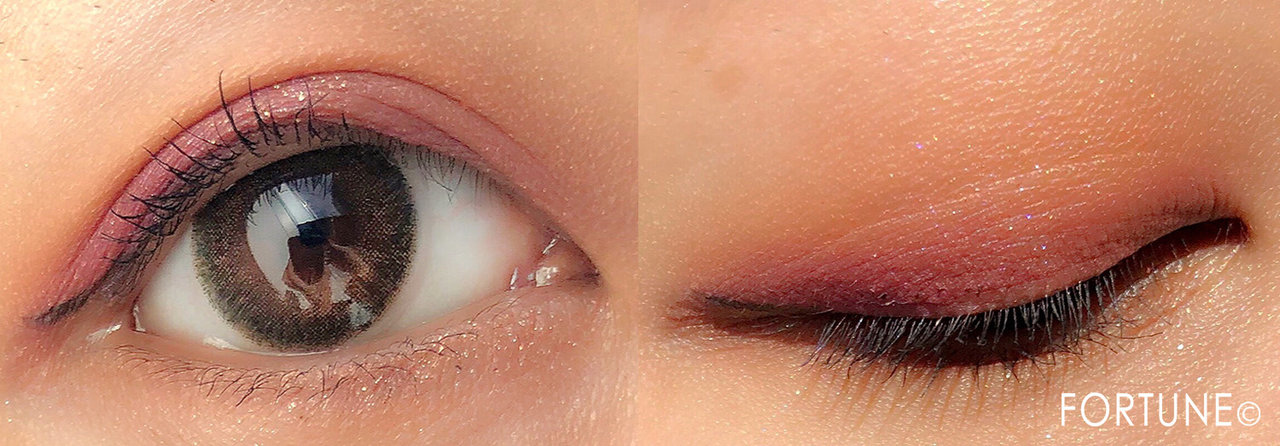 まぶたにのせると、ピンクニュアンスのあるベージュ系カラーに発色。