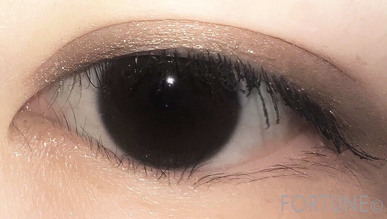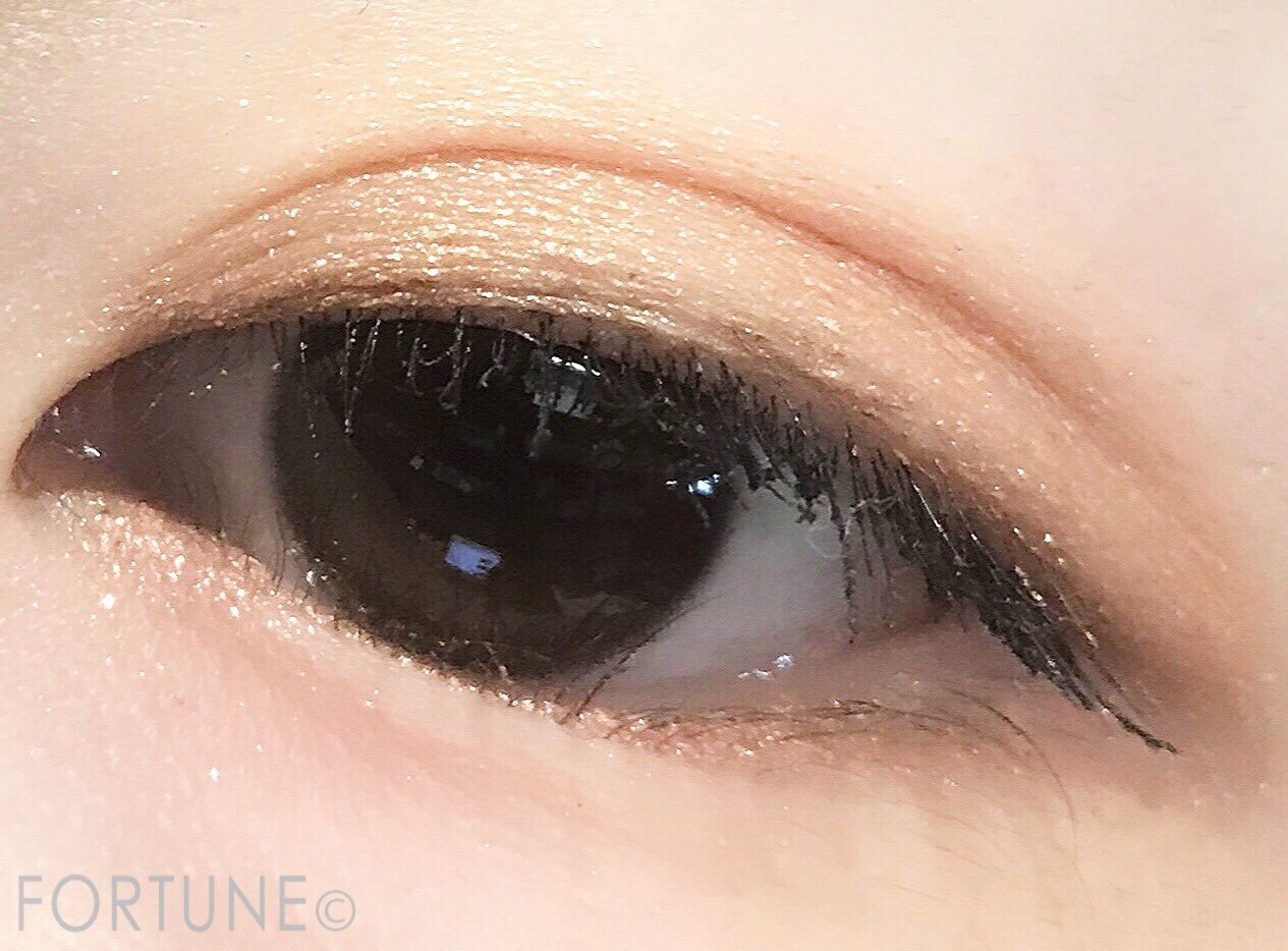 オレンジ寄りのゴールドはギラギラしすぎず上品なラメ感のある瞼に。目元を華やかにしてくれます。