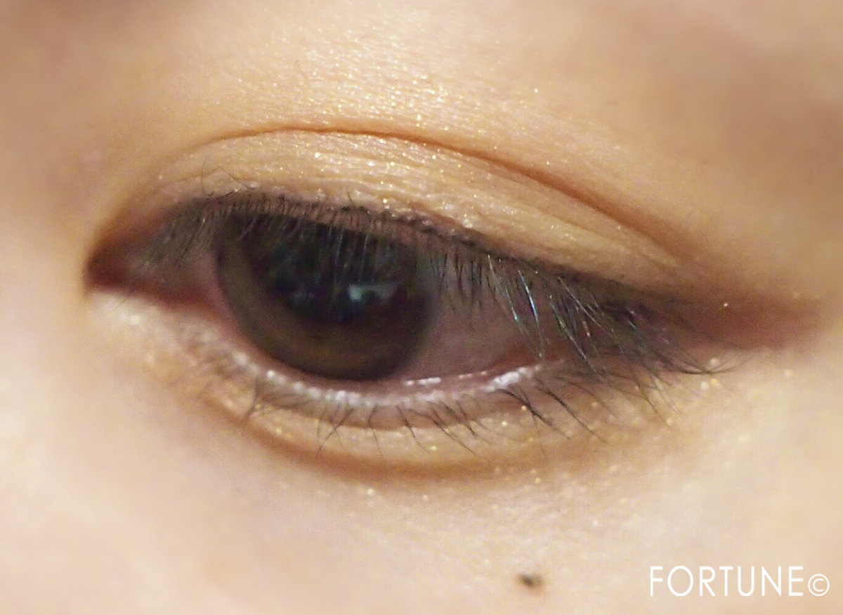 ④を細くアイライン状に引きます。下瞼にも目尻側から細く引きます。