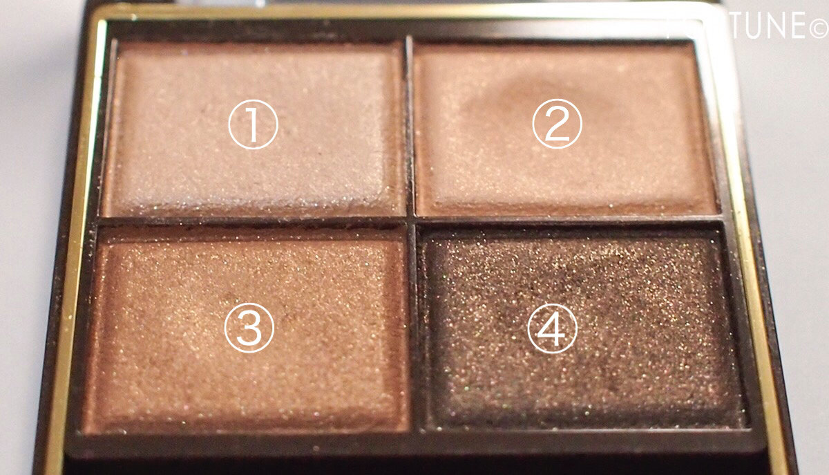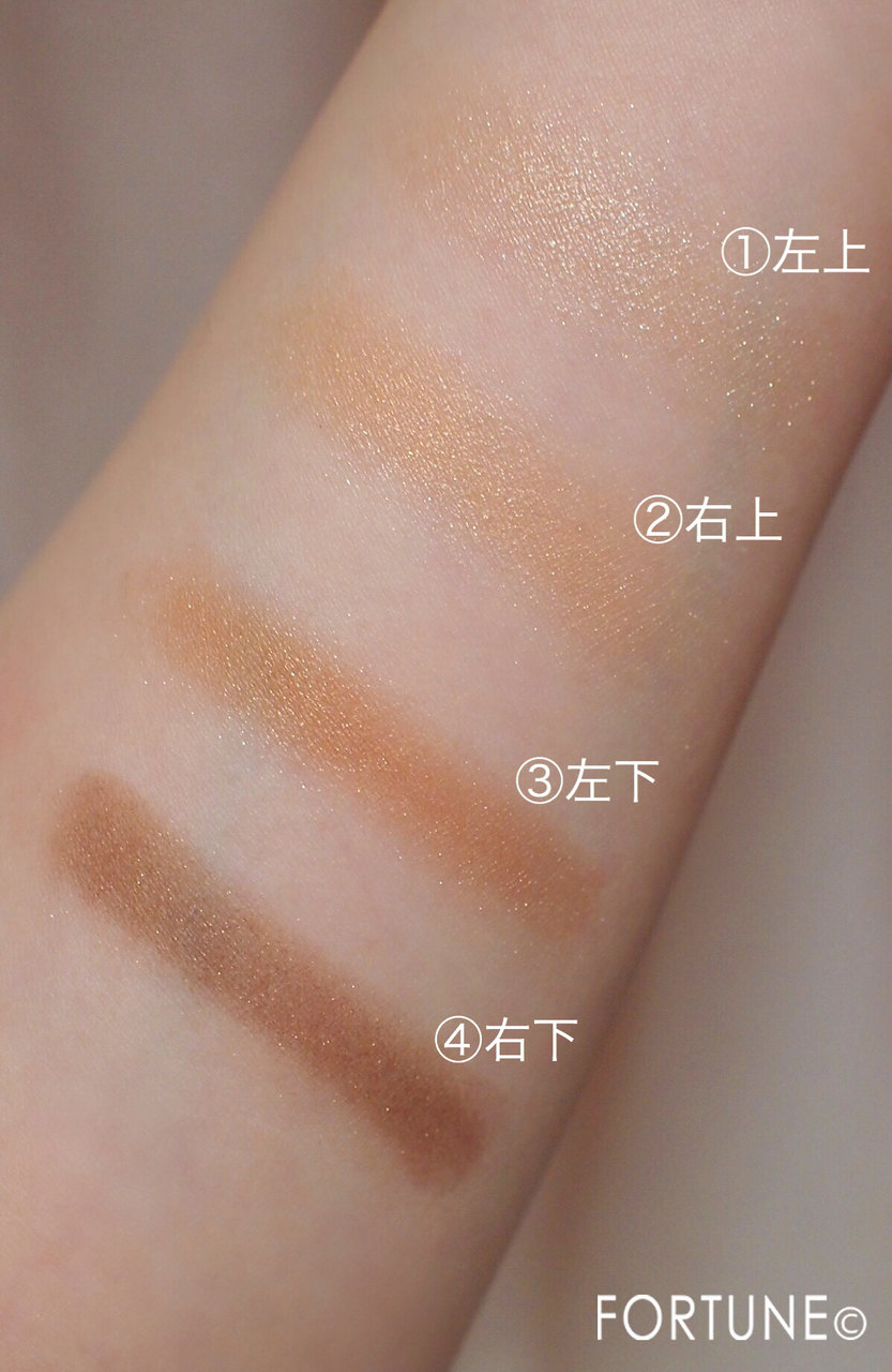 ①左上のカラーはしっとりとした質感で、まぶたを明るくするアイベースカラー。繊細なラメ感です。