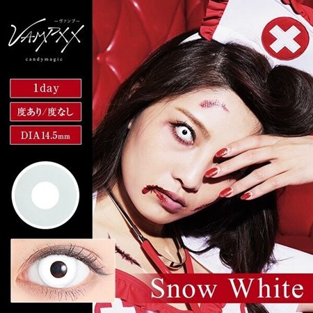 こちらは本格的なハロウィンアイメイクが楽しめるカラコンのアイテム。スノーホワイトは、ホラー系のハロウィンメイクをしたい時にぴったり。片目だけに付けると、より一層怖い雰囲気が出ておすすめです♪その他カラーバリエーションは、レッド、グリーン、ブルーなどがございます。