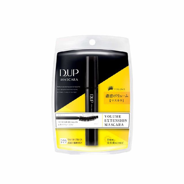 D-UPの『ボリュームエクステンション マスカラ』は、まつげの1本1本を濃く見せてくれるマスカラとなっています。2種類の毛からなるブラシの効果で、ダマになることなくマスカラ液を塗布することができますよ♡セパレートされた理想のまつげを実現したい方におすすめ。