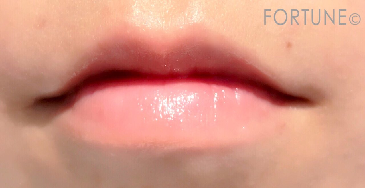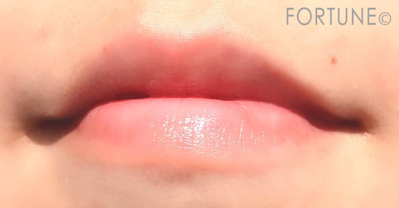 「ローズピンク」はほんのりとピンクの色がついているので、そのままの唇に塗ると自然な血色感が出ます。