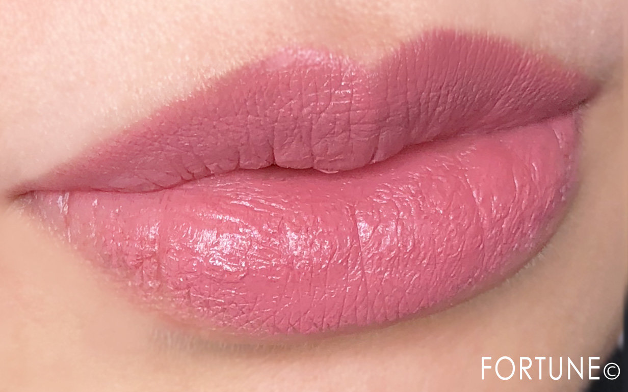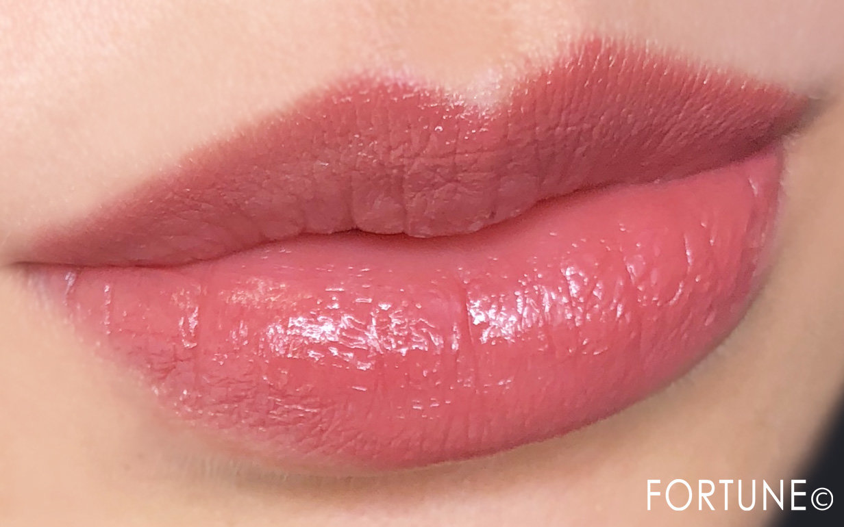 上品なセミマットの仕上がりで、テクスチャーは滑らか。唇の上を滑らすだけでムラなく綺麗に仕上がります。密着度がかなり高いので落ちにくいのが嬉しいポイント!