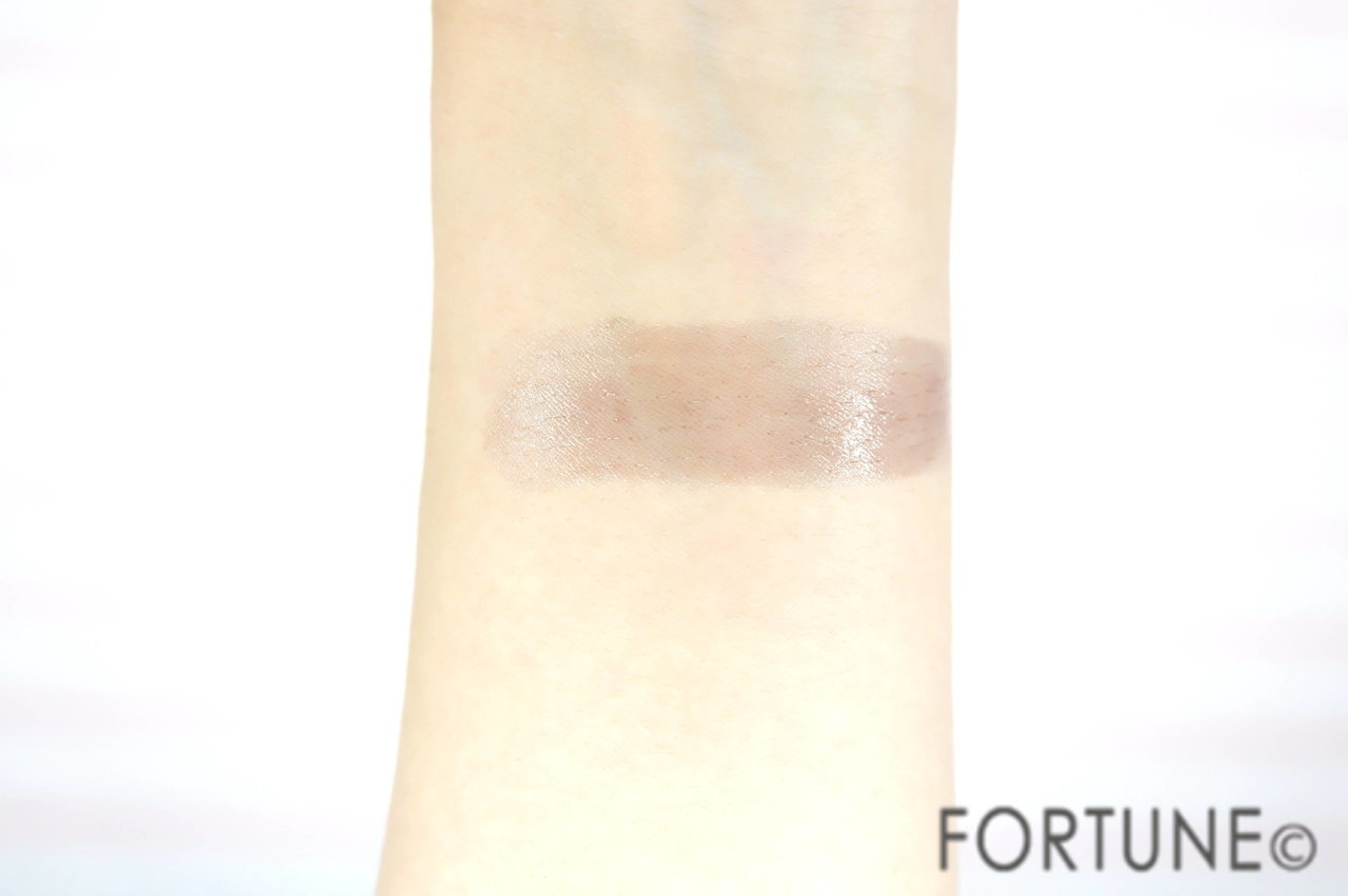 腕に塗ると透け感のある黒に発色しましたが、リップにぬるとほんのり紫っぽい色味で、そんなに不自然に感じることもありませんでした。