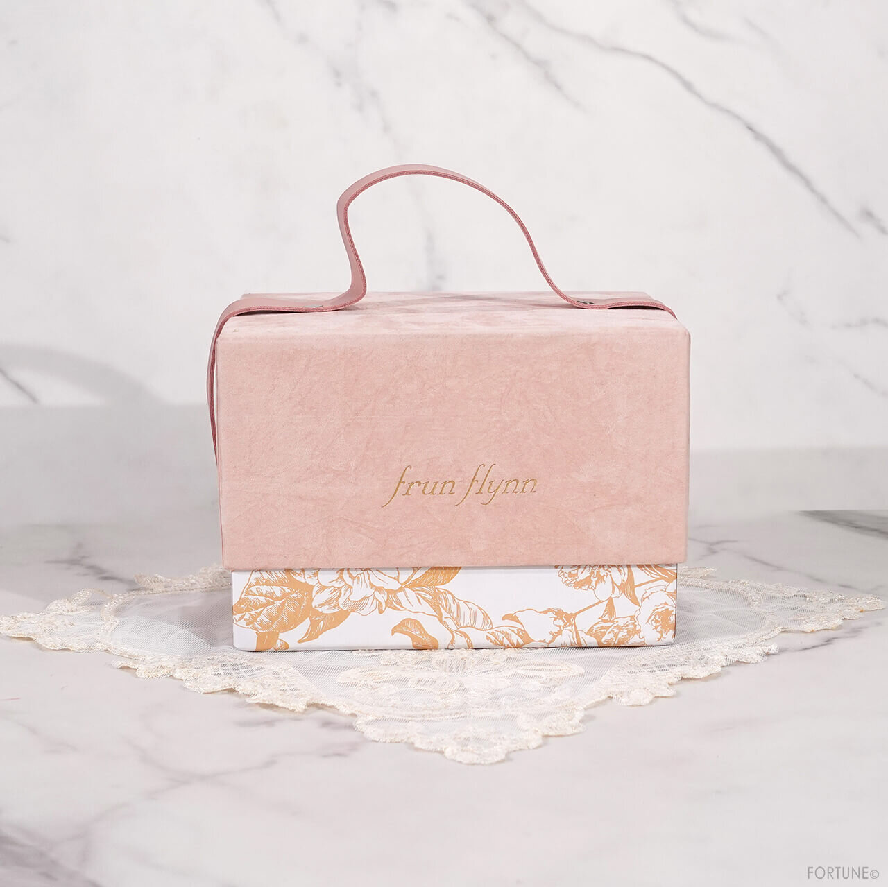 オリジナルギフトボックスは、ピンク×ゴールドを基調とした、ロマンティックなデザイン。