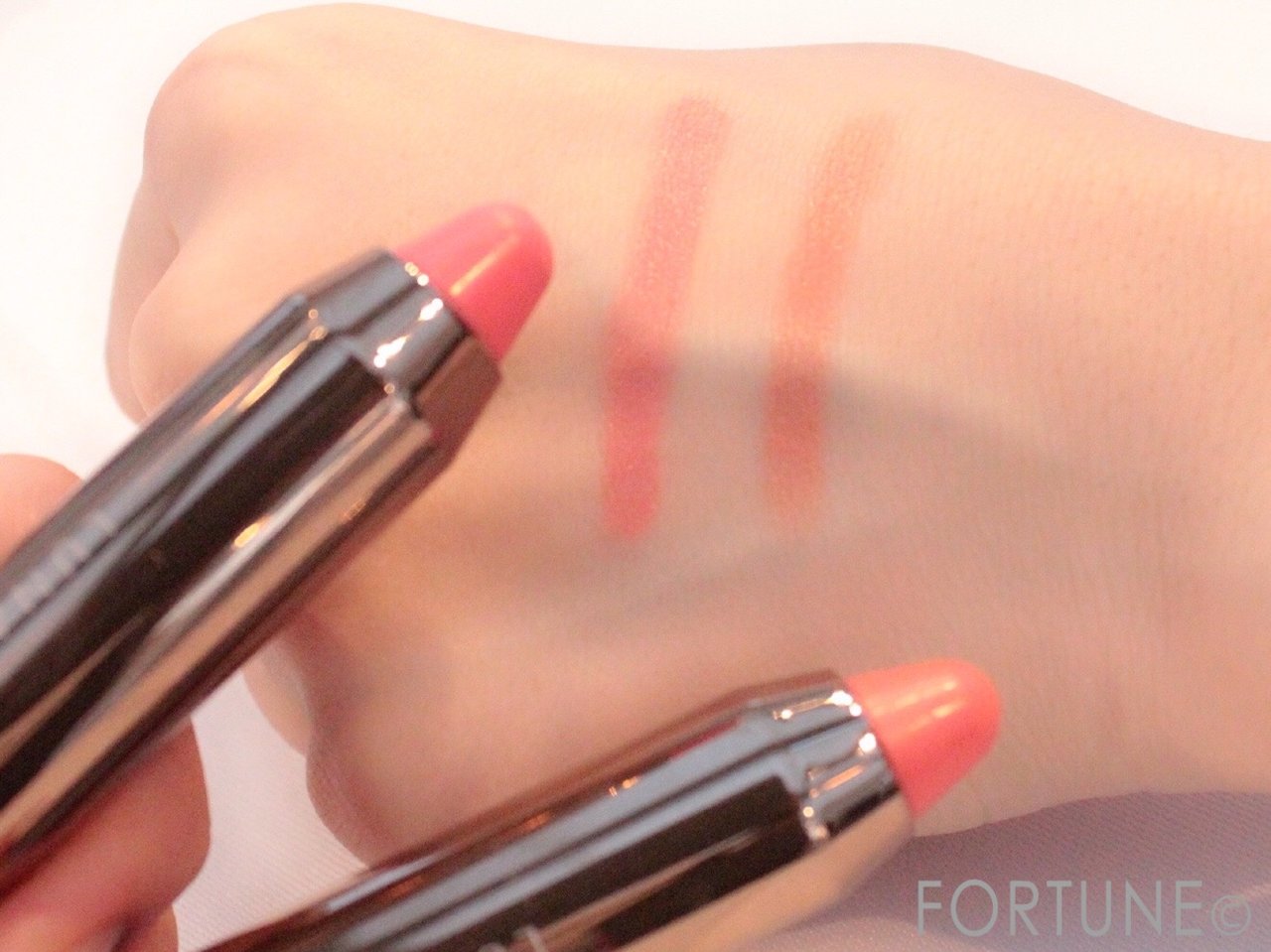 見た目は華やかなカラーが多く、高発色タイプですが、高発色で華やかな色のはずなのに、薄膜でソフトグロウな質感で広がるので、華やかな色も肌に溶け込みやすくつけこなしやすいリップになっています。