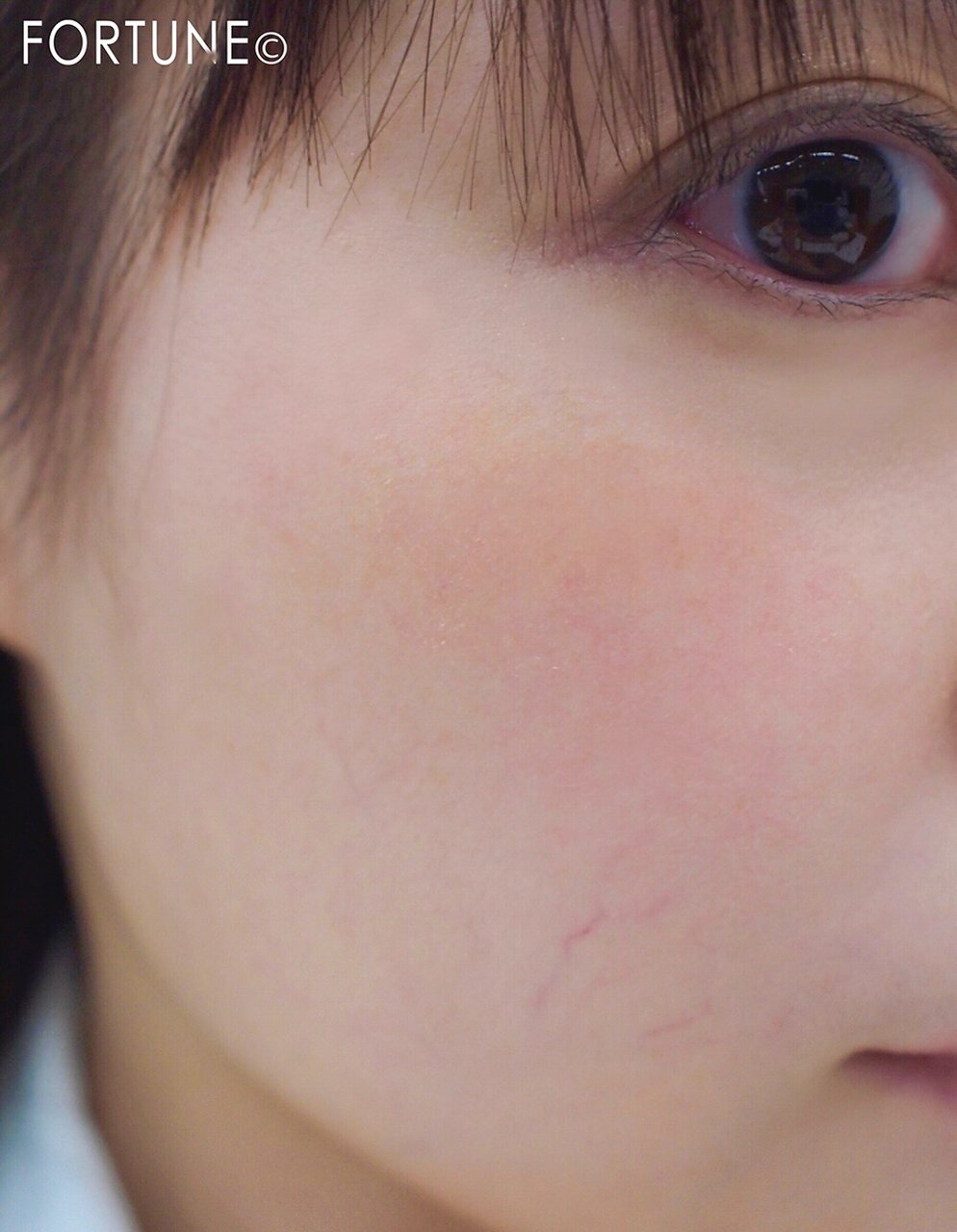 ①のフェースカラーは肌の質感を均一にして、チークの映える肌に整えてくれます。
