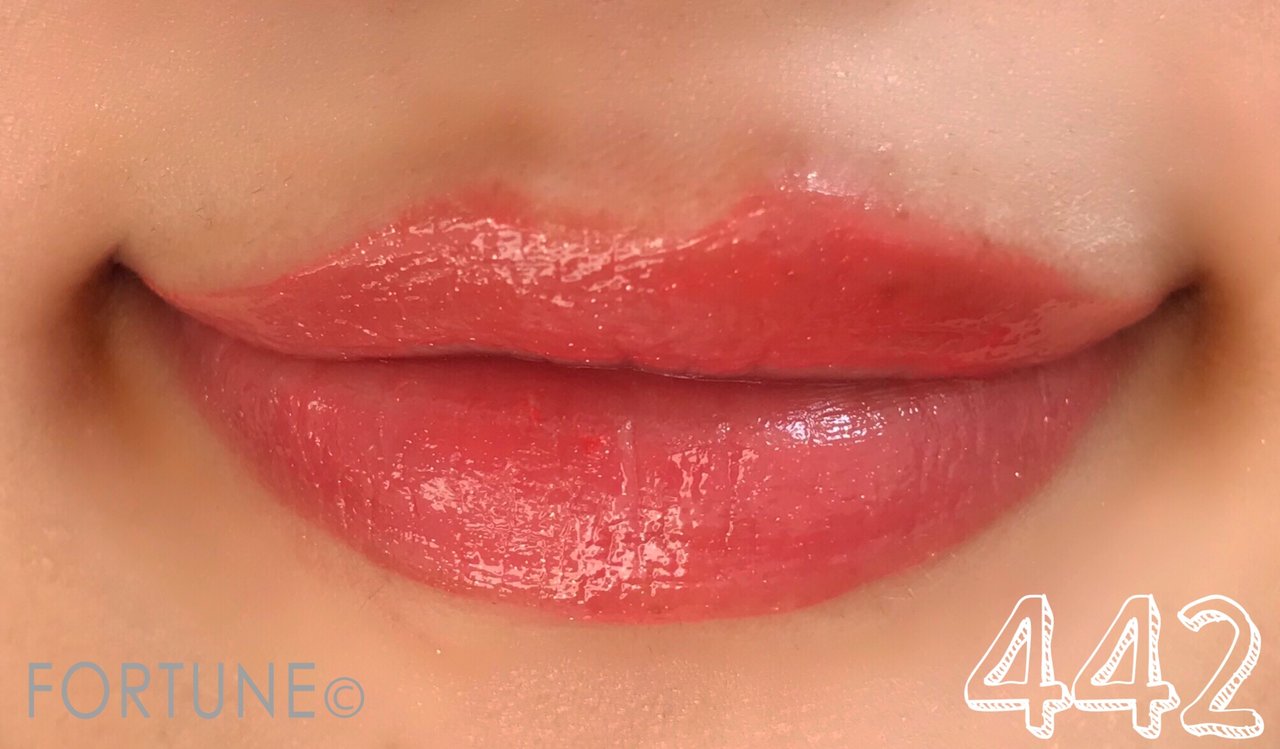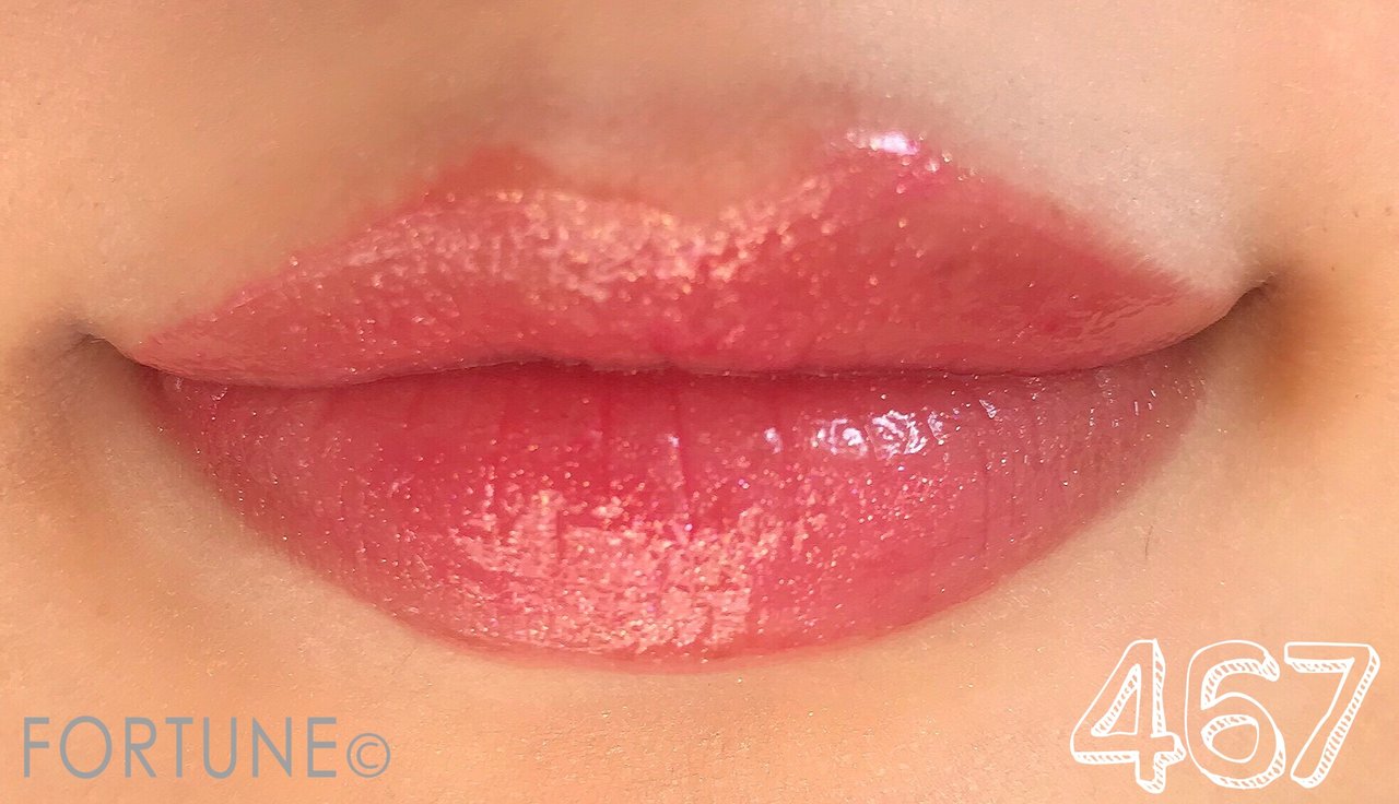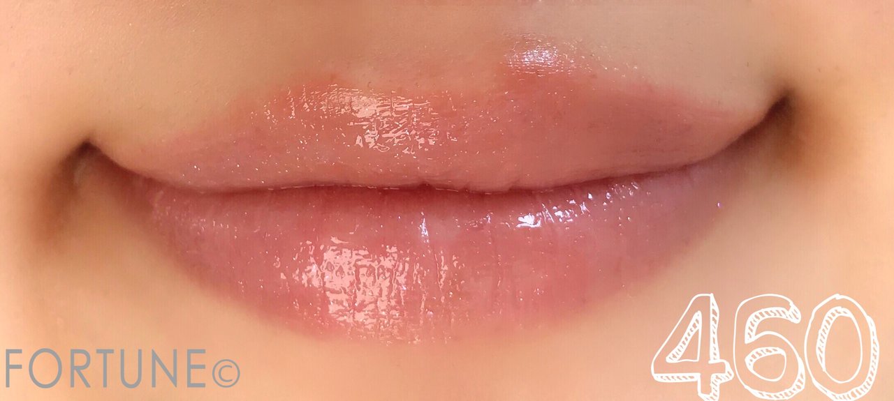 460番はほんのりピンクがかった透明のグロスです。単体でナチュラルに仕上げても◎ですが、お手持ちのリップの上に重ねてあげると、ツヤ感がプラスされて華やかに♡
