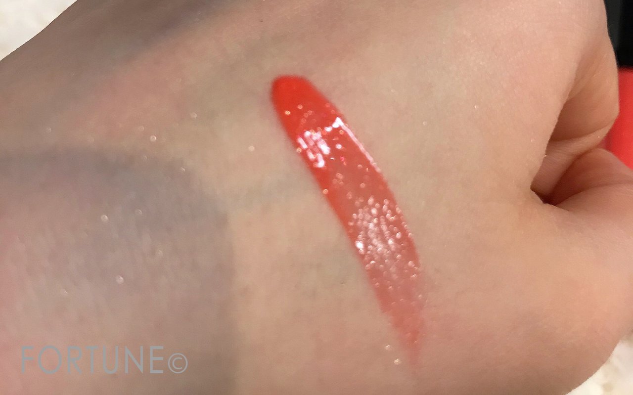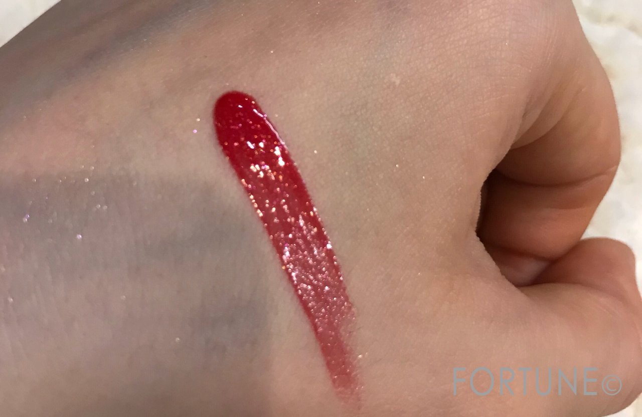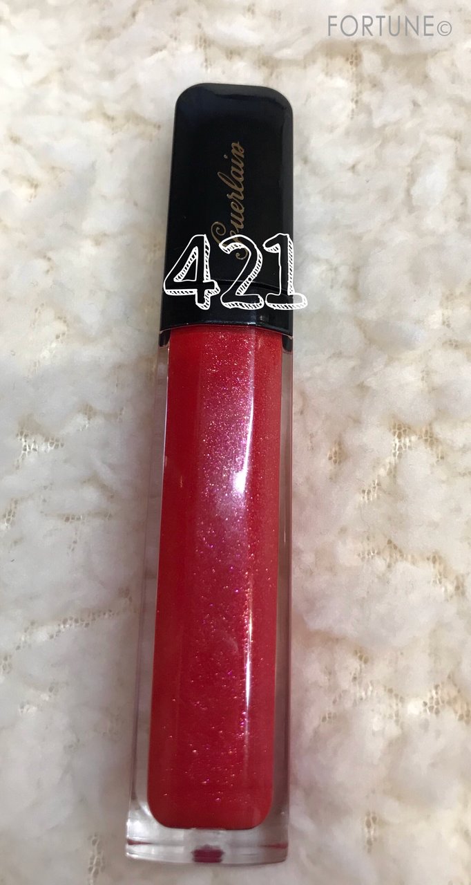 グロス単体でもこんなに鮮やかな発色!光に当たるとキラキラとまばゆい輝きを放ち、ラグジュアリーな印象です。ギラつかず上品なパール感は、さすがゲランのリップですね!