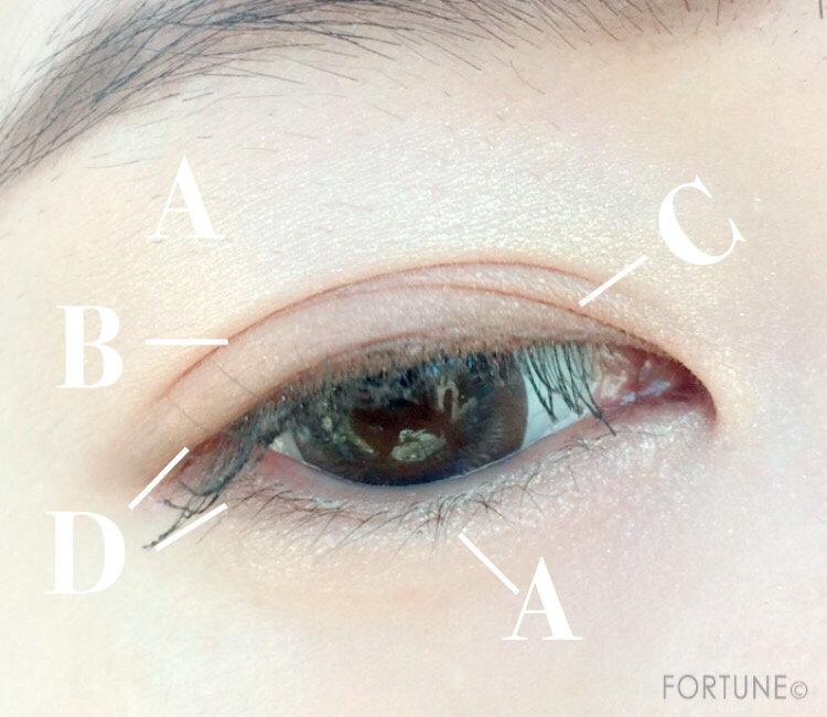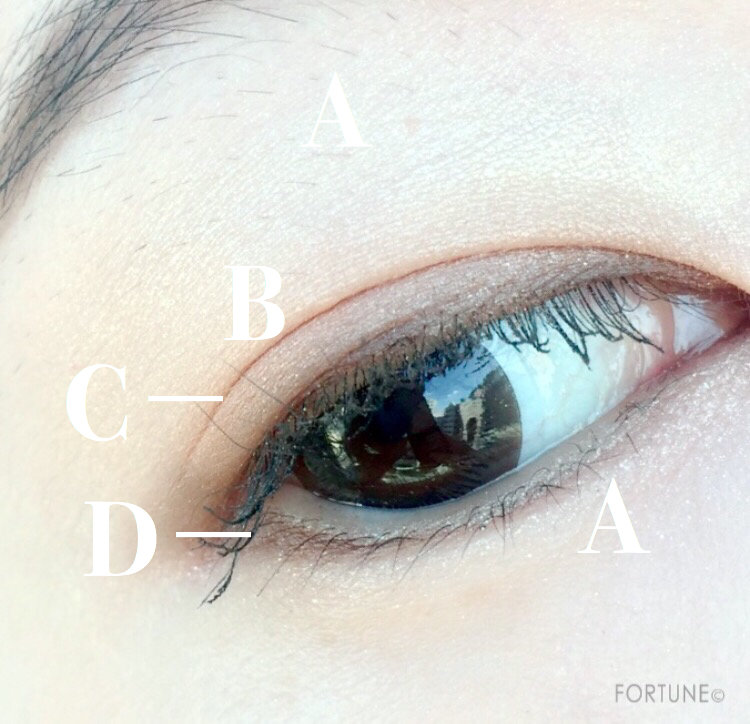 私は、下まぶたにもAを全体的に塗って華やかさをプラスしました。