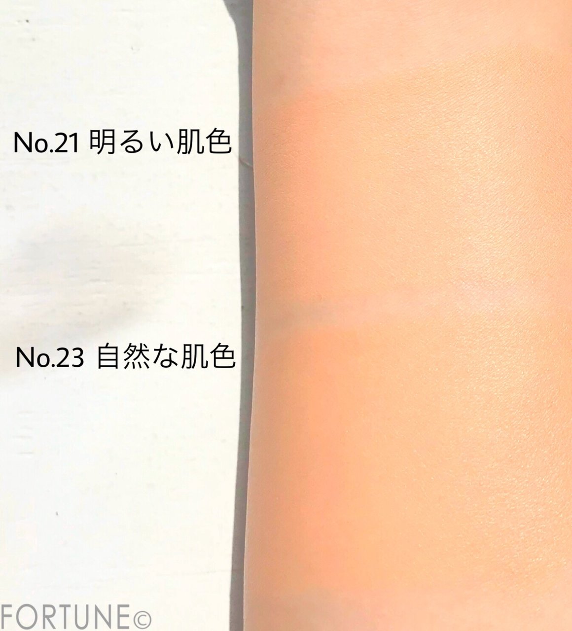色は写真左から“No.21 明るい肌色”、“No.23 自然な肌色”となっています。