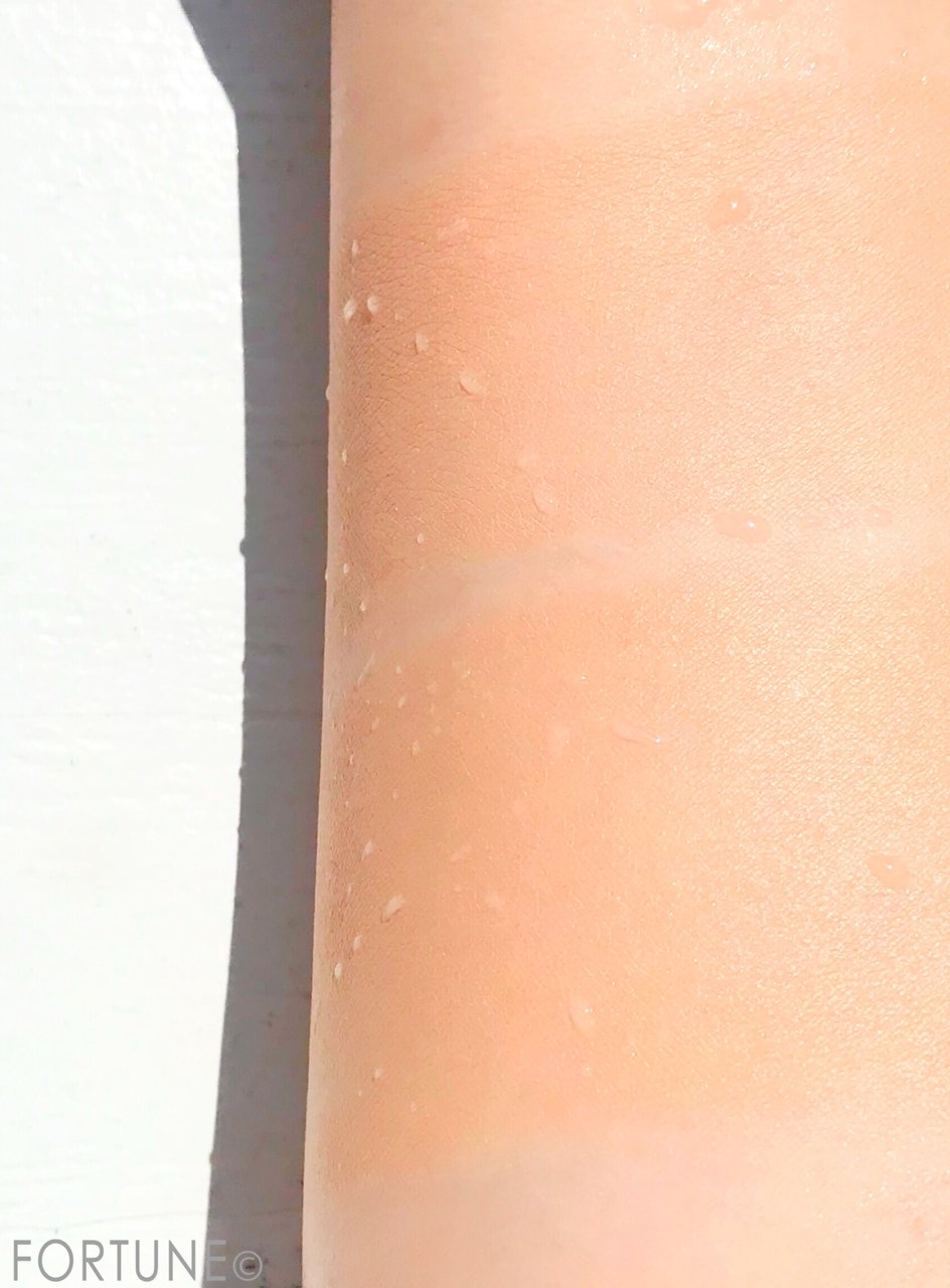 水道水を肌に当てて流してみましたが、ファンデーションが水分を含んでヨレることもなく、しっかり水をはじいてくれています。