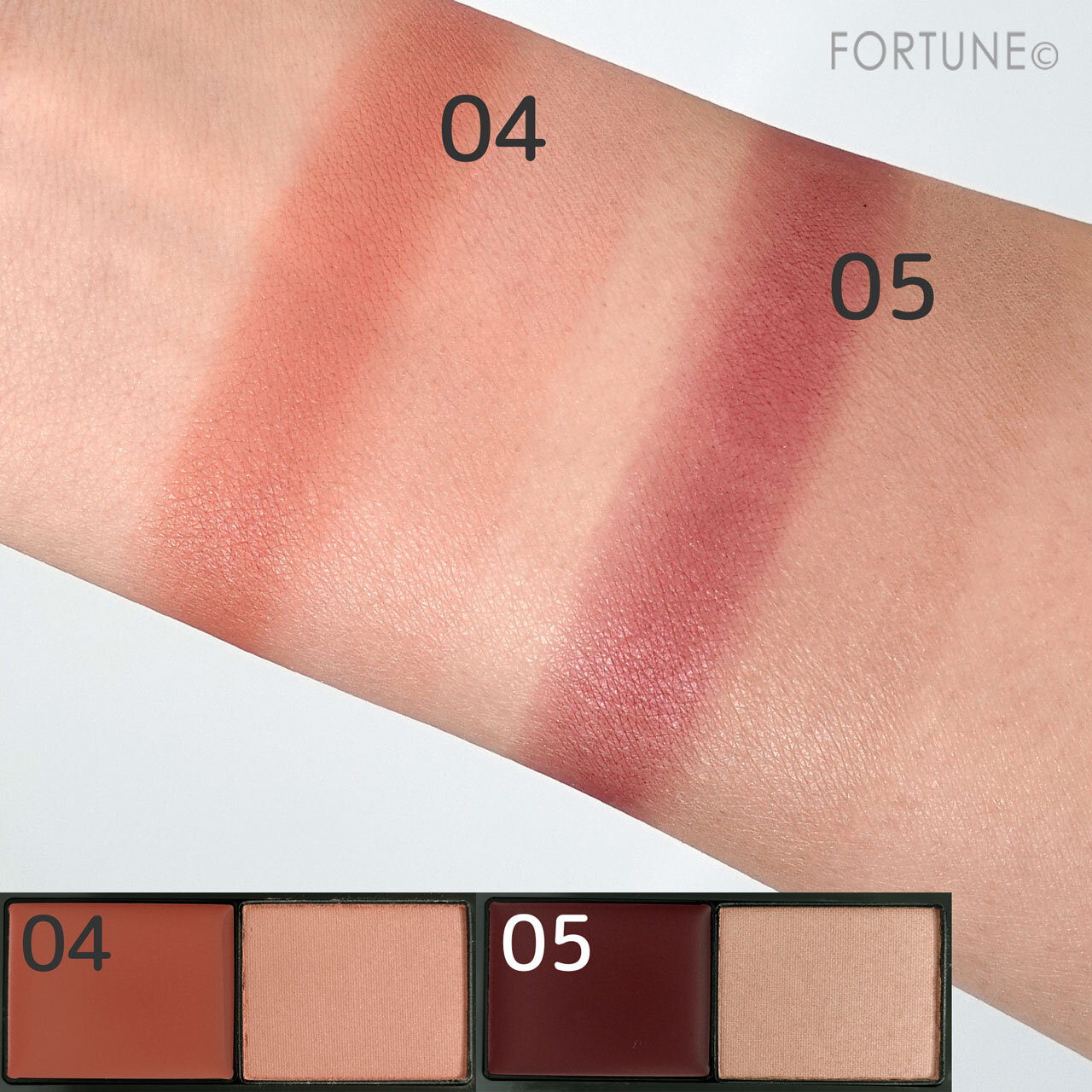 クリームの上からパウダーを重ねたスウォッチ