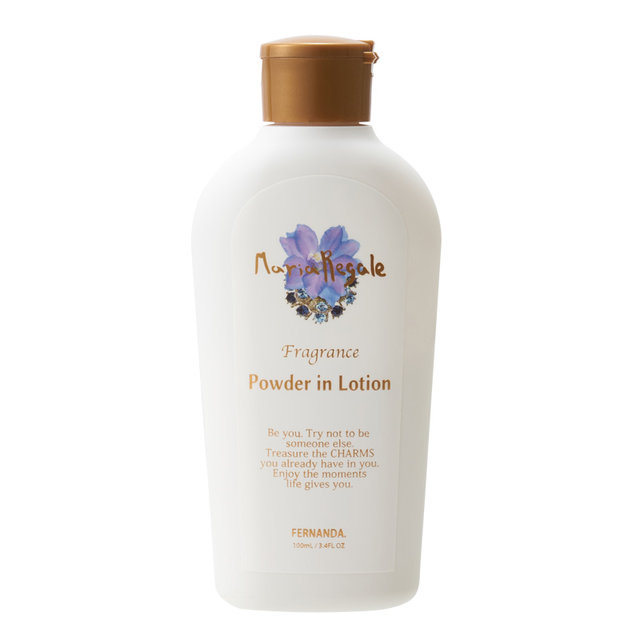 フェルナンダのフレグランス パウダーインローション マリアリゲルは、夏や梅雨の時期特有の肌のベタつきを抑えてくれる微粒子パウダーを配合しています。