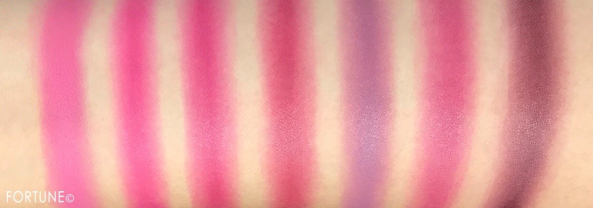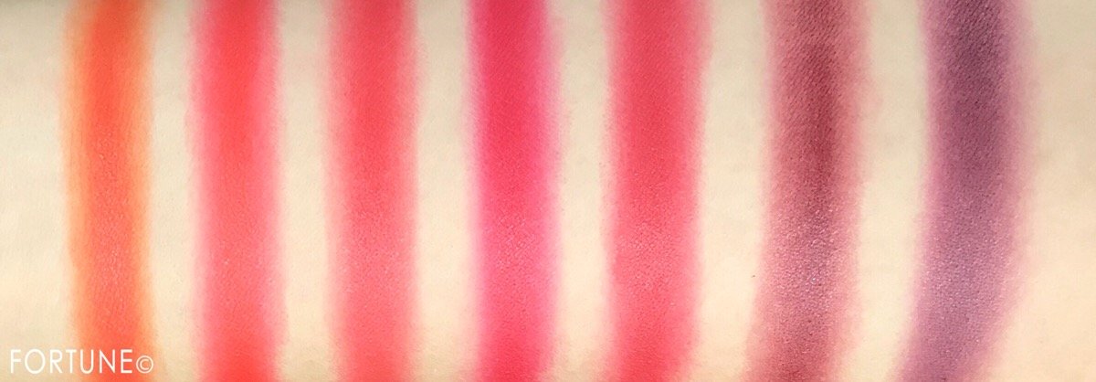 「フォーゲットミーノット オーデイシャスリップスティックパレット」のスウォッチです。