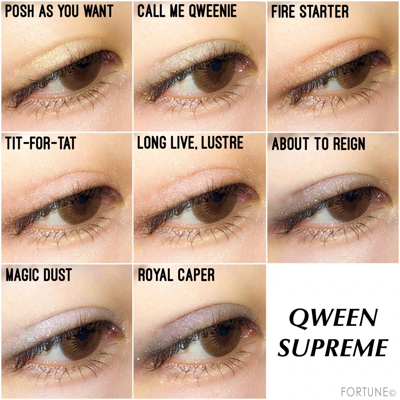 クラシック キューティとは打って変わって、クイーン シュープリームはエッジの効いた色調。キラキラ輝く質感のアイシャドウが多めにセットされたパレットで、目元を華やかにするカラーが揃っています。