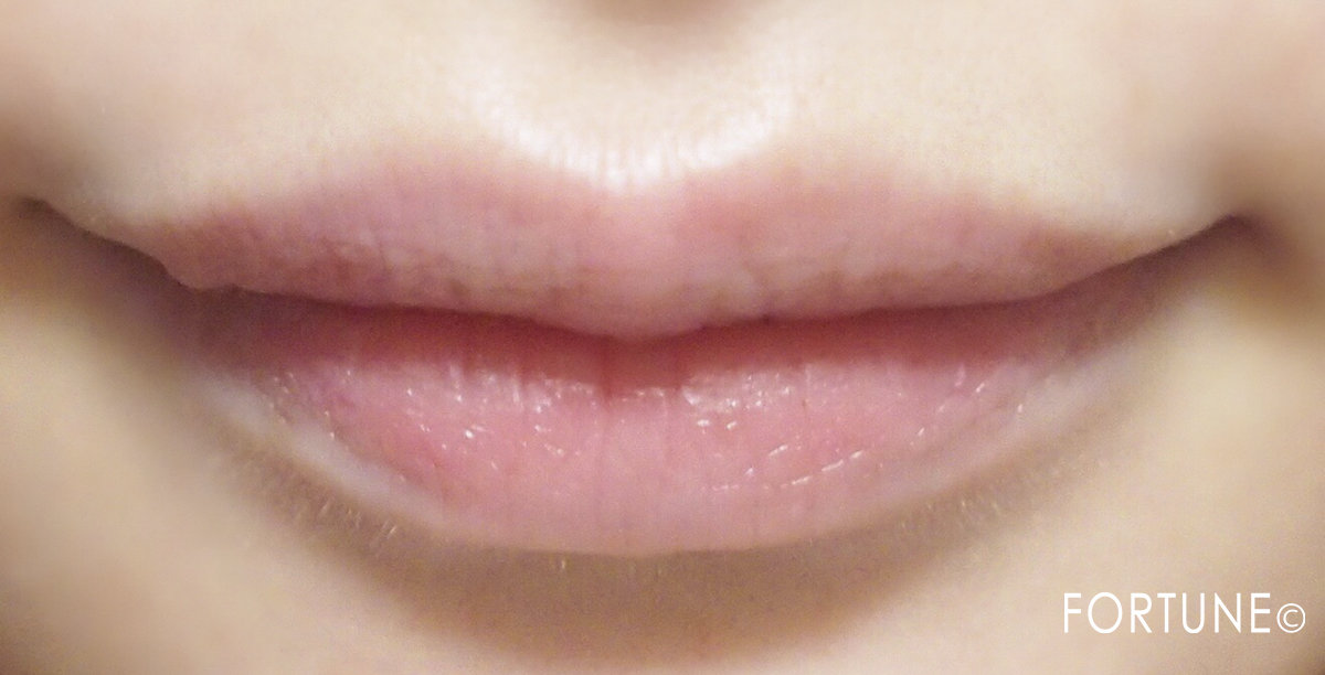 ほとんど色味はつきませんが、薄いピンクをのせることで、実際の唇よりもほんのり血色感をプラスしてくれる+1℃。