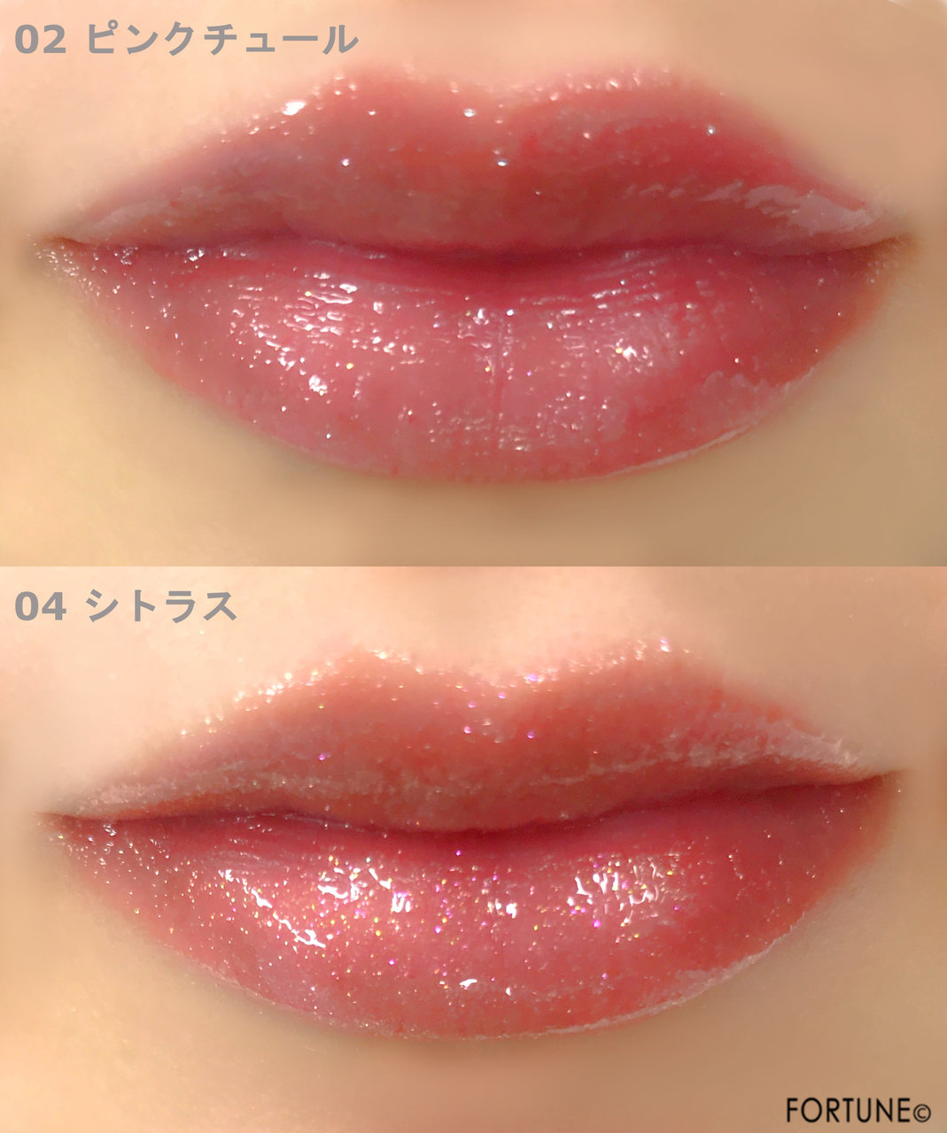 上が「02ピンクチュール」、下が「04シトラス」。