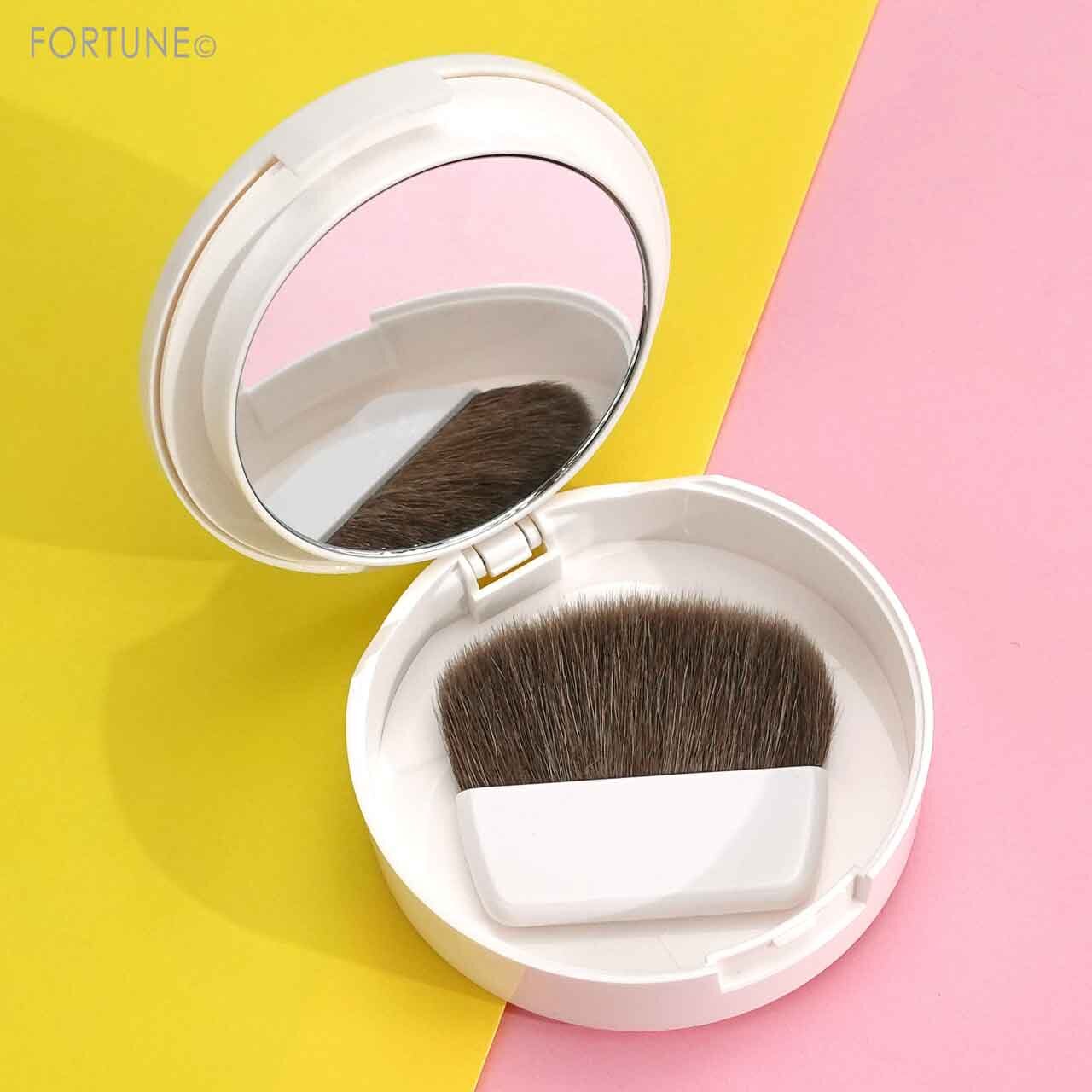 コンパクト内には大きめのミラーがついており、メイクの仕上がりがチェックしやすい仕様。ブラシも収納できて便利ですね。
