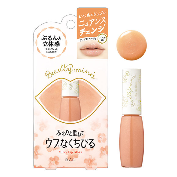 ふんわりミルキーなヌーディーカラーで登場した「ビューティーマインズ ミルキーリップグロス」。1本で使ったり、手持ちのリップと重ねてニュアンスカラーを楽しむこともできます。リップと重ねると、春らしく柔らかい色味にチェンジするので、春らしさも一気にアップしますよ!