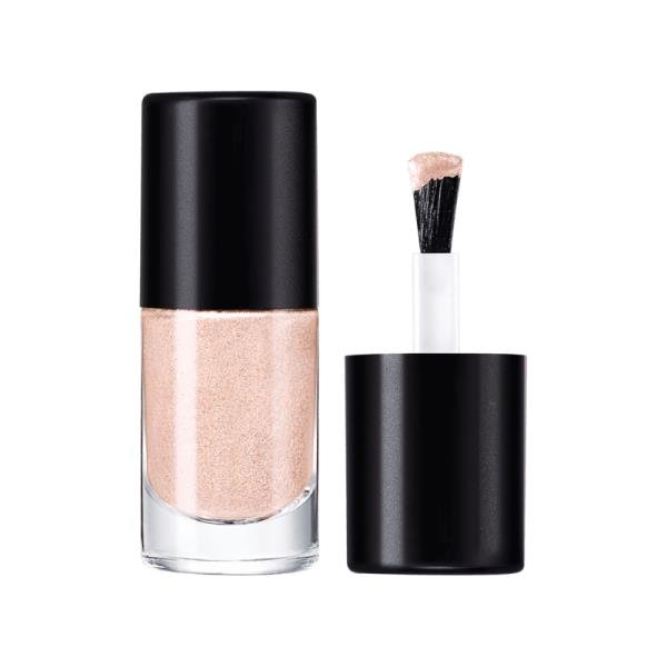 のせた瞬間、瞼にピタッと密着しパールが飛ぶことなくつけたての輝きをキープ。ネイルカラーのようなブラシ付きでデコルテやボディなどマルチに使えます。