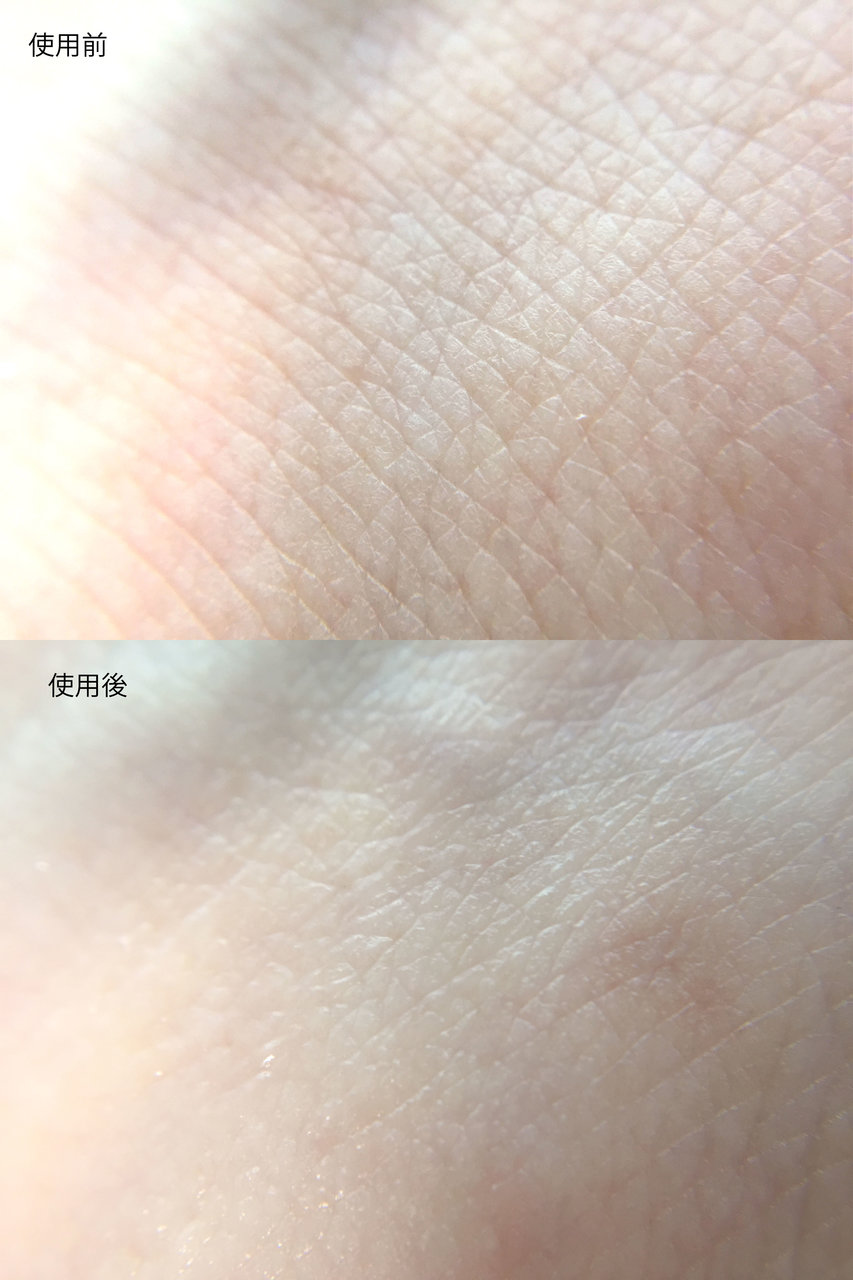 実際に使用前と使用後で色のムラがなくなり、みずみずしく肌のキメが整っているのが肌表面を見ても分かります。