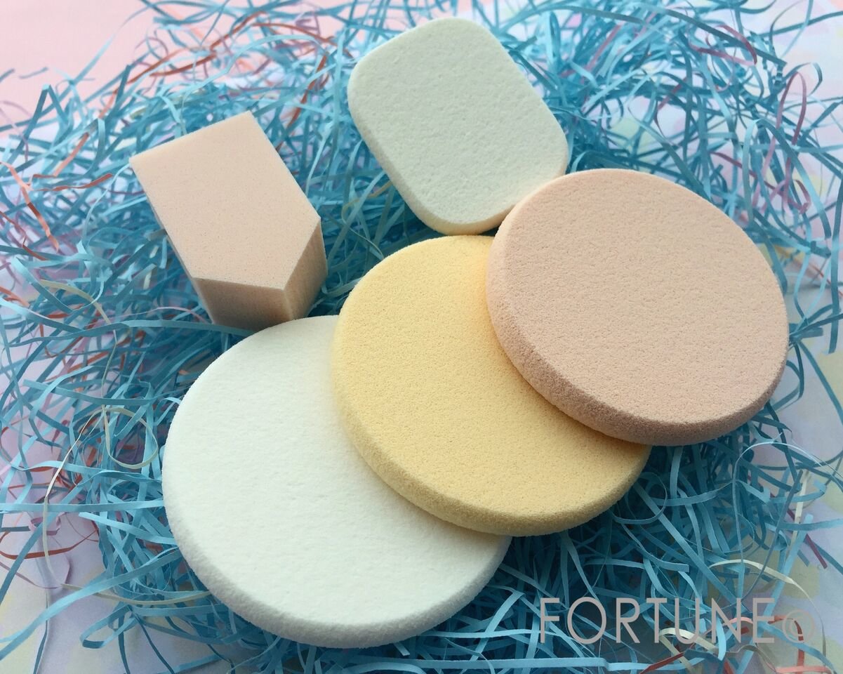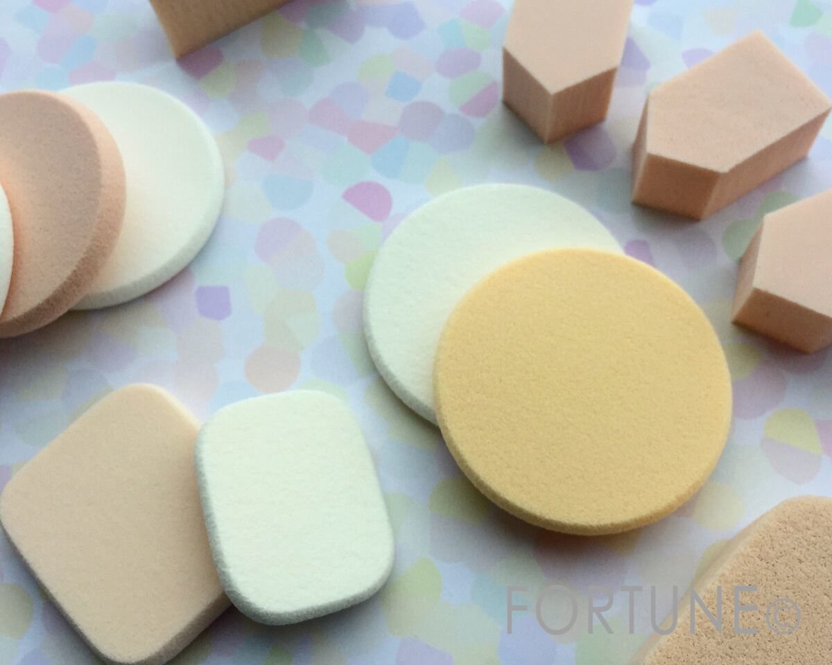 たくさんの面や角があり、ベースからポイントメイクまでマルチに活躍するスポンジです。