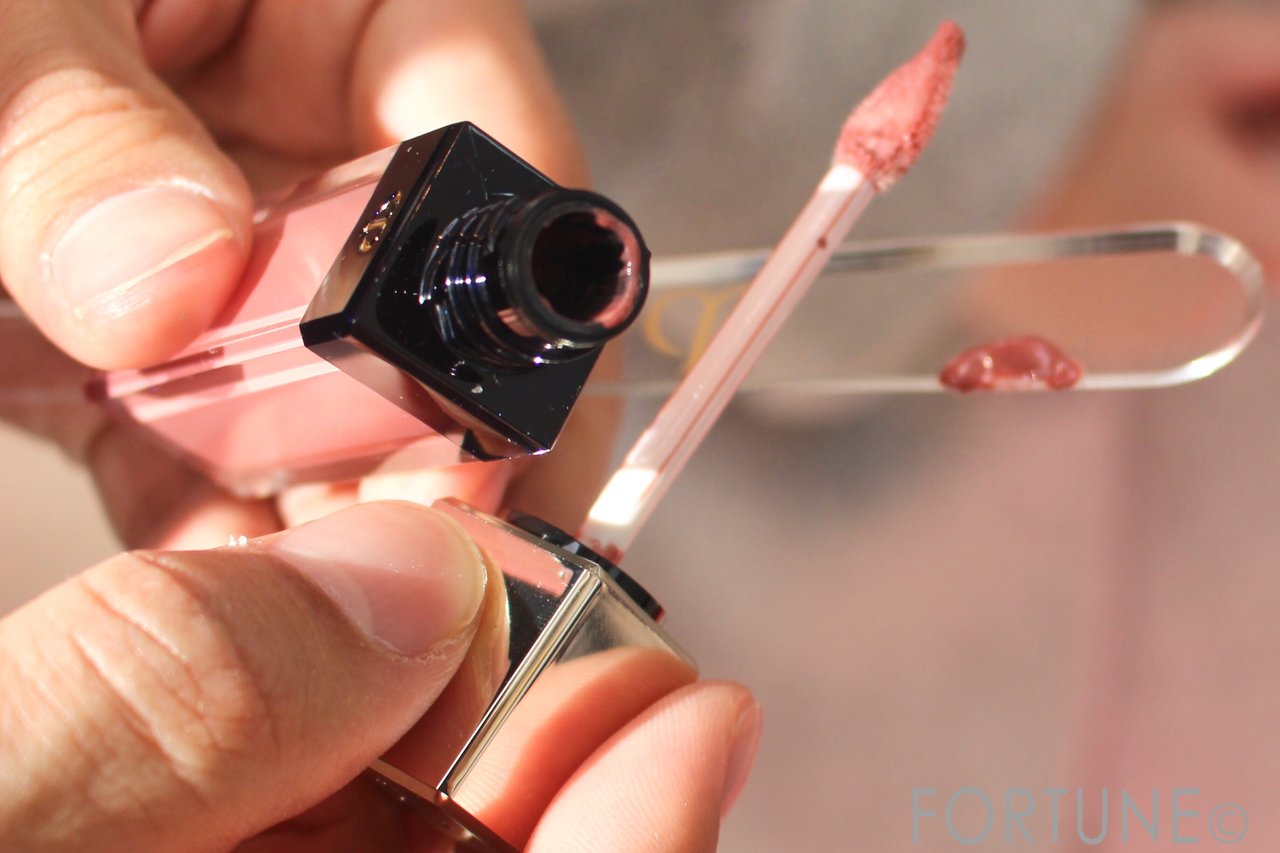 編集部は濃い色のリップグロスが好みでいつも似た色を買ってしまうことをお伝えし、似合うカラーを選んでいただきました。