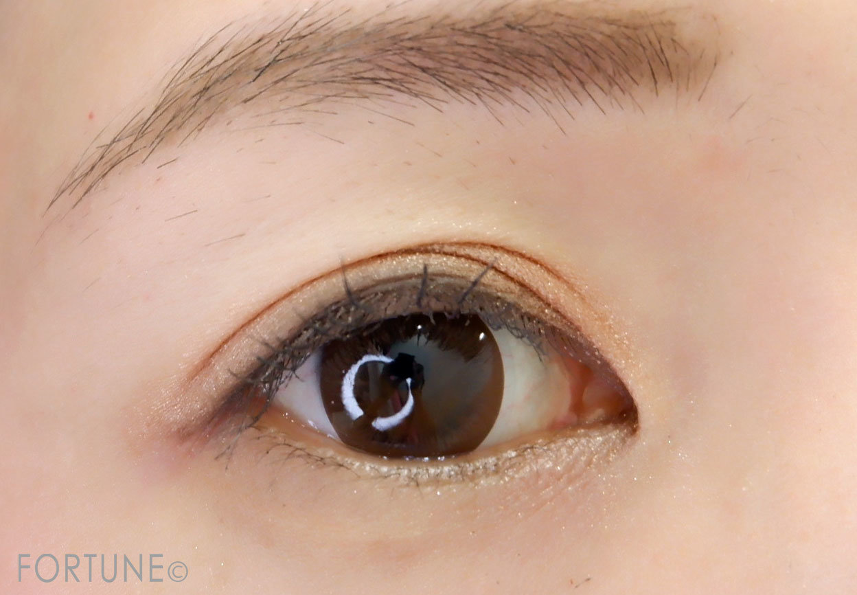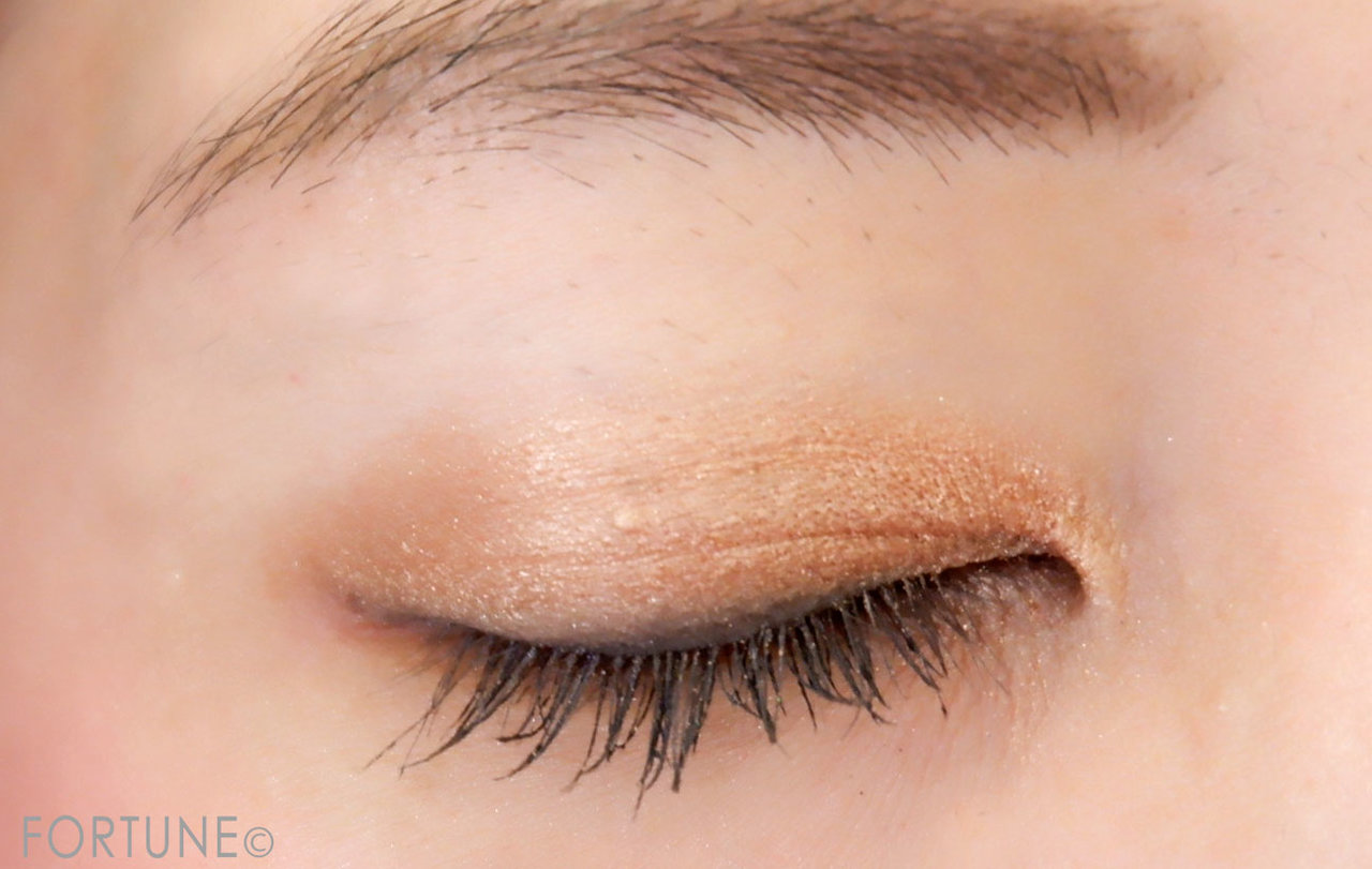 C:ウォームゴールドをメインに使用したこちらは、ツヤ感がとても綺麗で、少しオレンジがかったゴールドが夏の焼けた肌にぴったりですよ!メイク方法はA+C+Dの時と同様です。