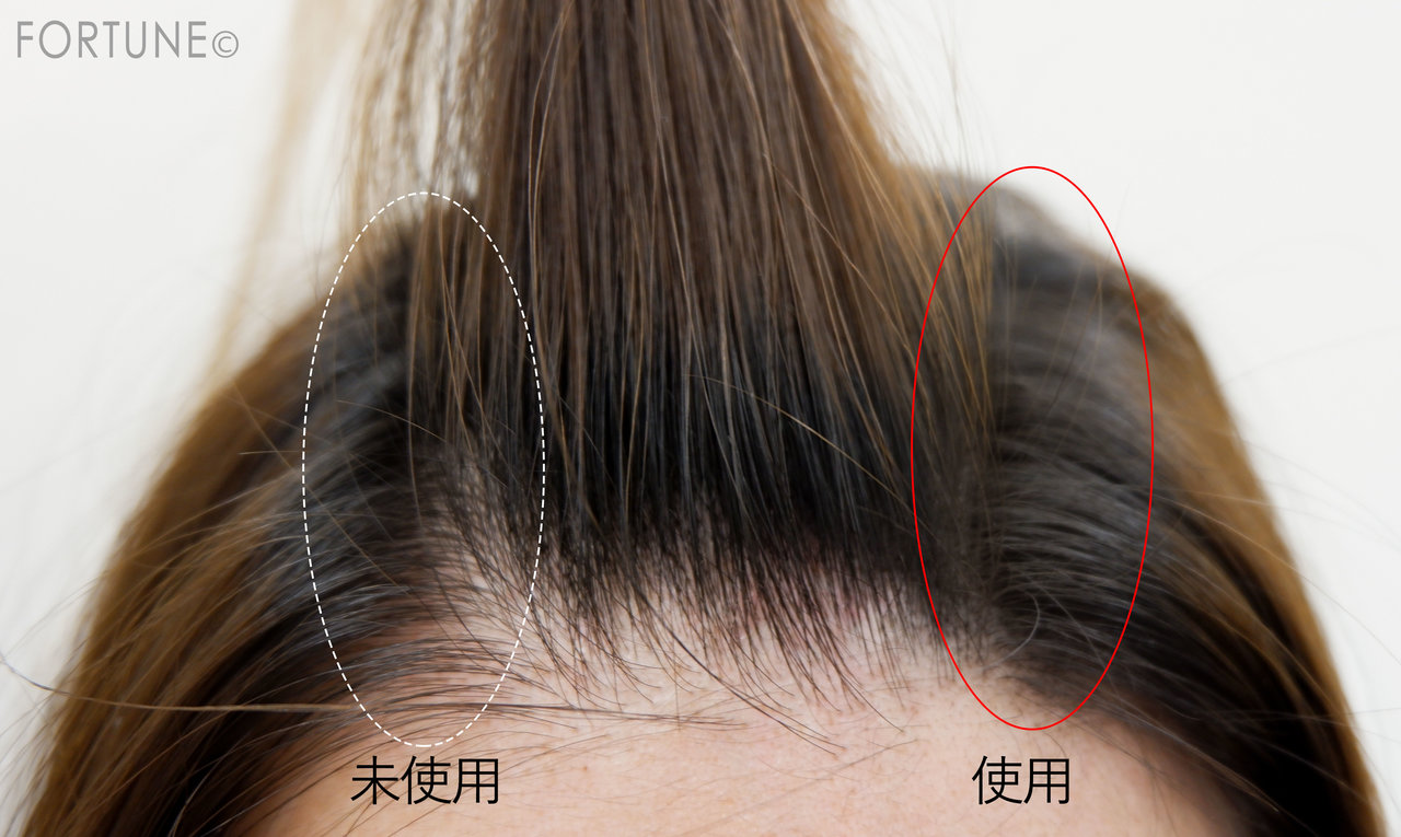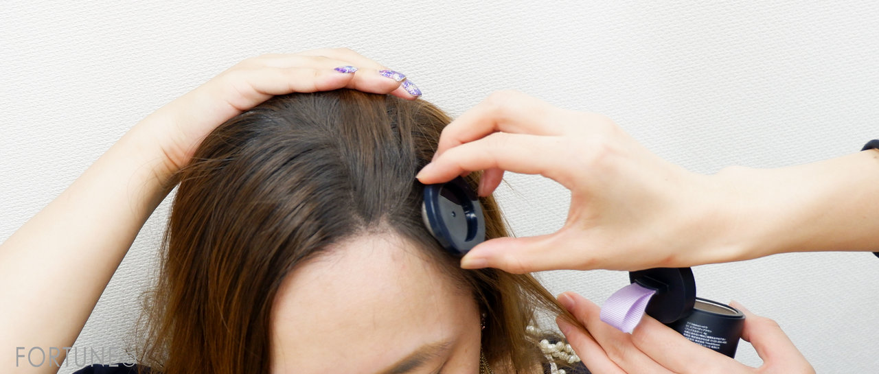 産毛や薄毛が気になる分け目やつむじも、フジコdekoシャドウがあればふっくらとみせてくれますよ。肌に密着するから粉っぽさも出ません。