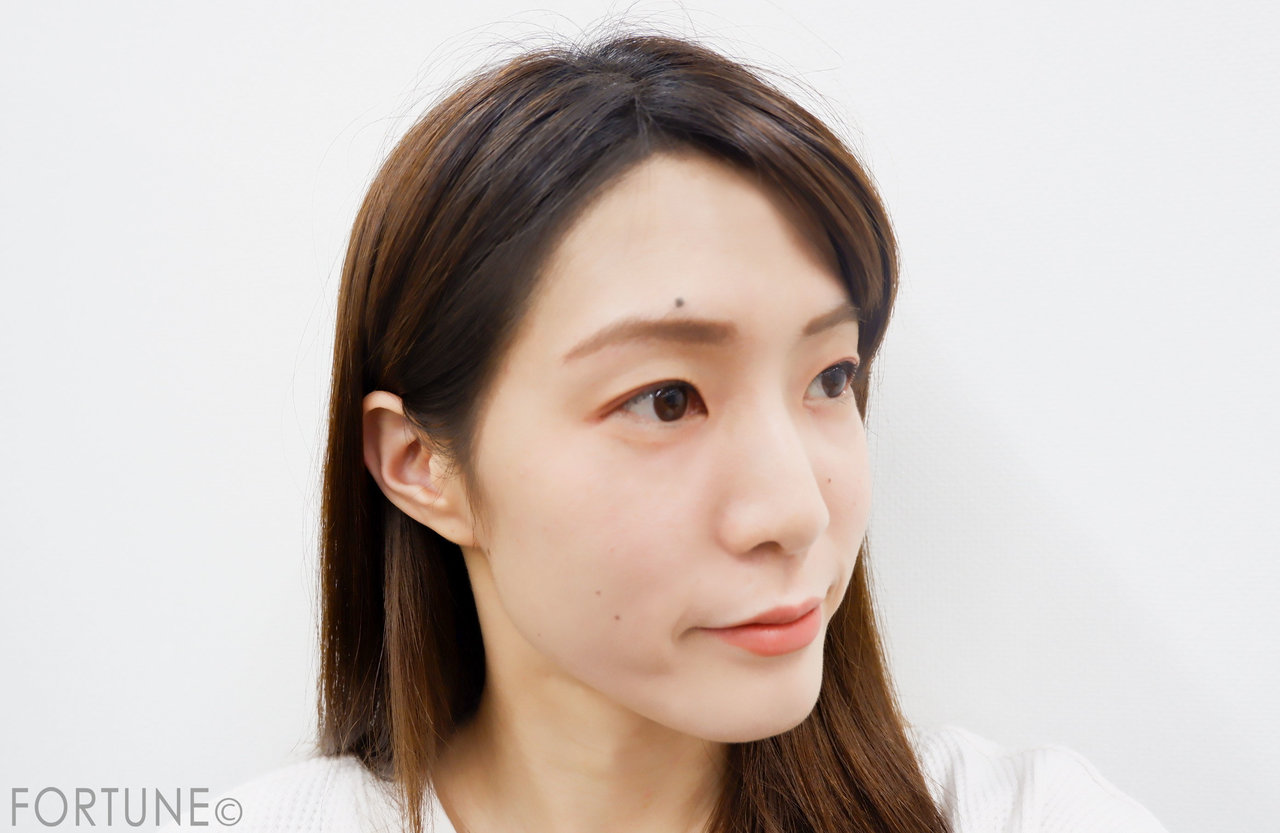 しかし、フジコdekoシャドウを使用したことで、大顔に見せていたおでこの肌感が減り、顔を短く小顔に見せてくれました。