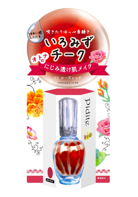 まず最初にご紹介するのは、ピディットの『いろみずチーク』です。ウォーターベースのリキッドチークで、透明度の高い仕上がりになるところが特徴◎みずみずしいテクスチャーで、自分のお肌が持つツヤ感を引き出してくれるアイテムとなっています。色調節がしやすい薄づきなところもポイント♡