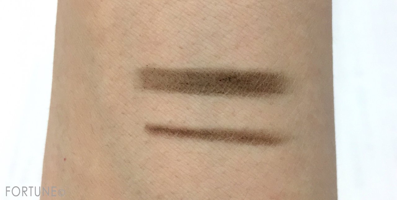 アイブロウペンシルでは、下の画像のように太さの調整が可能です。目尻を細く描きたい時も、眉毛の隙間を埋めたい時にも万能です。