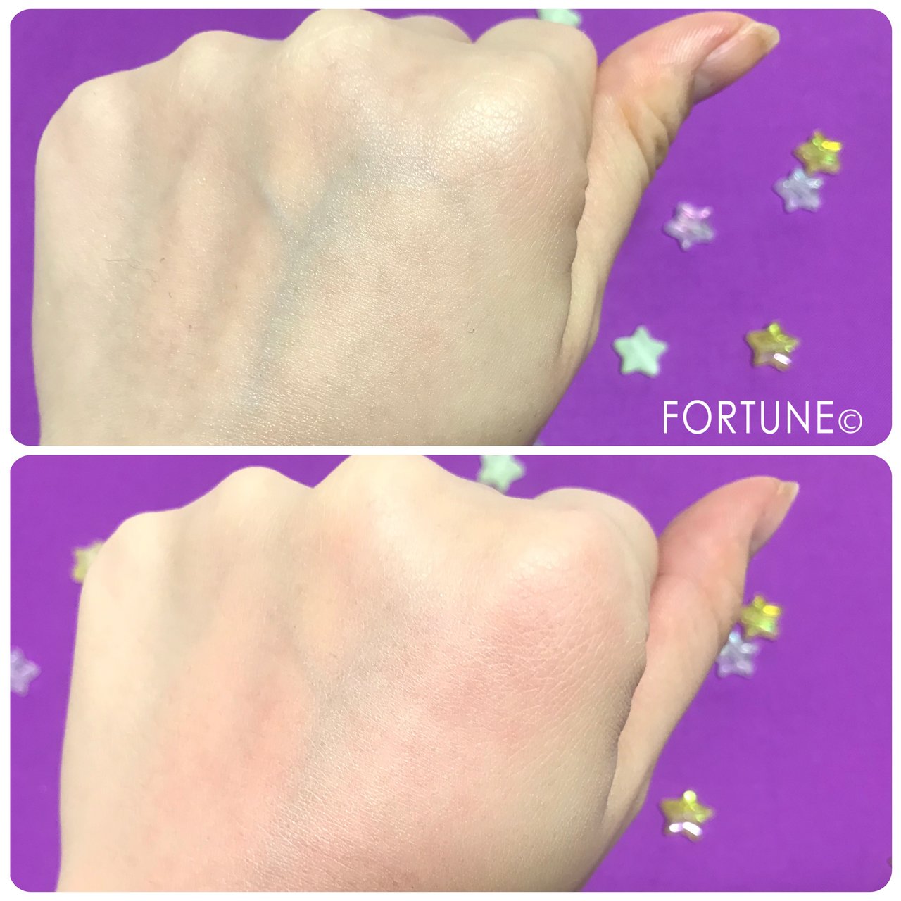 使用前はやや青白い手ですが、塗布後な自然な色になり厚塗り感のない素肌っぽい仕上がりに。